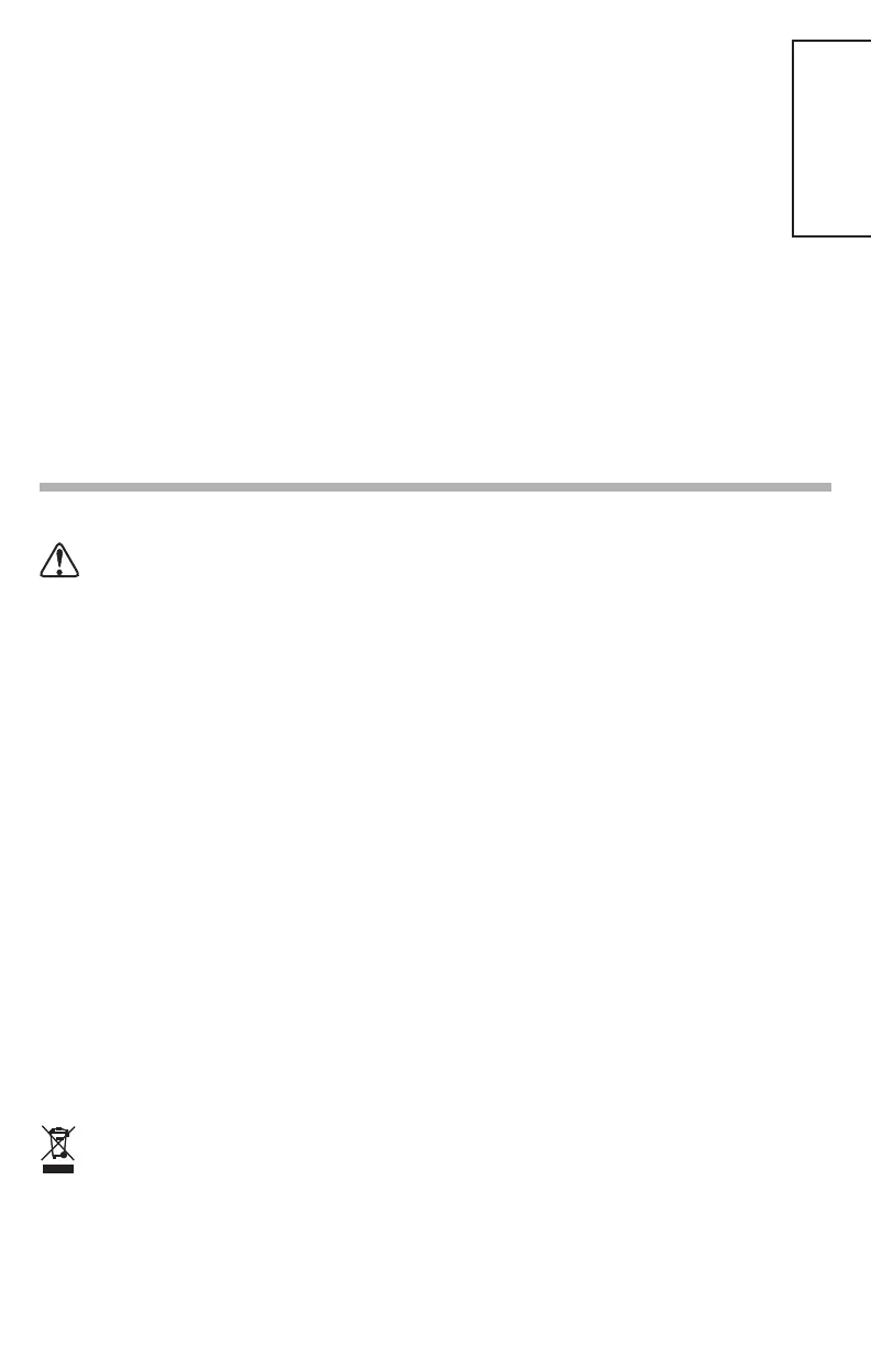 • Do not dispose of product or batteries in re, batteries may explode or leak.