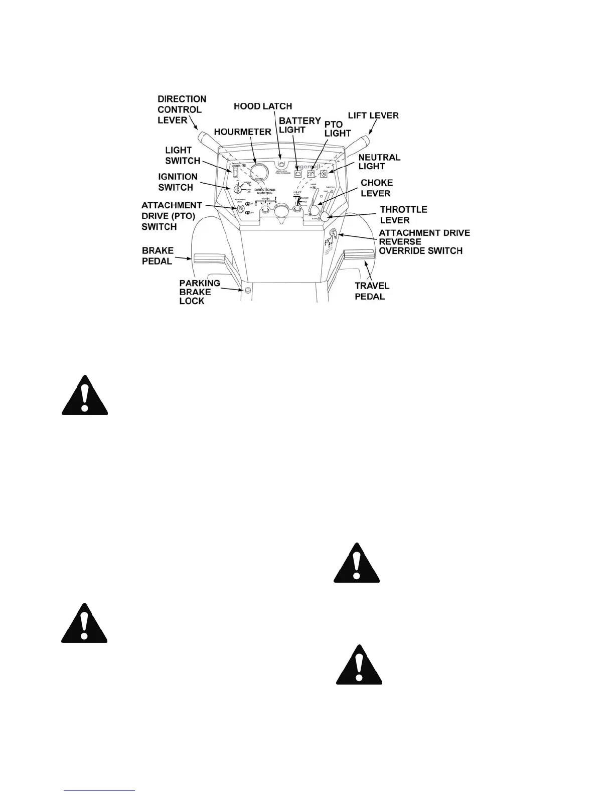 2. Completely stop the tractor. Actuate the brake