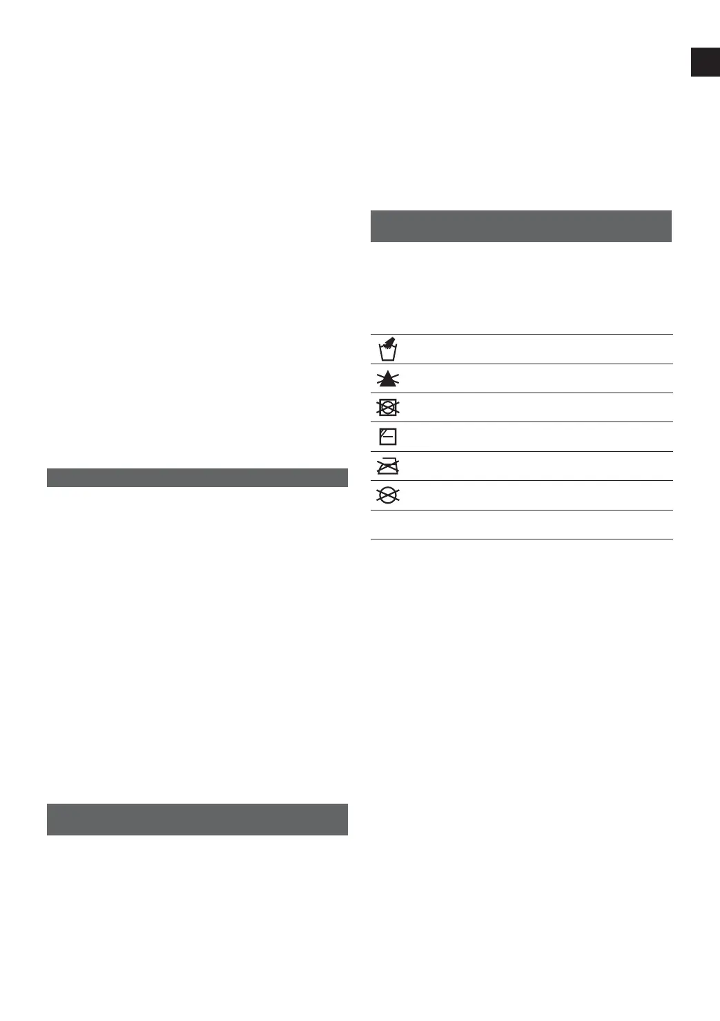• Rispettare le norme per il lavaggio del rivestimento tessile