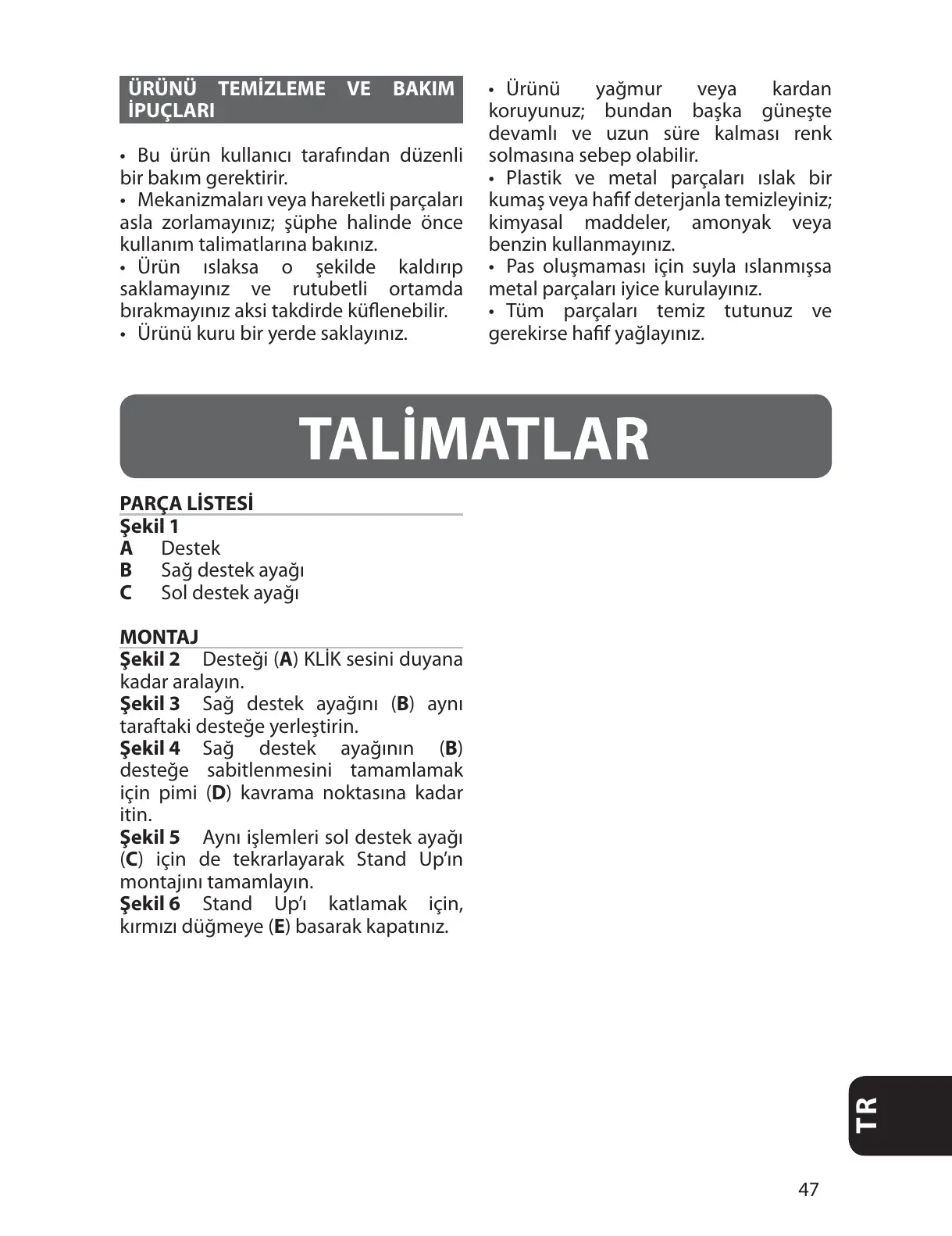 ÜRÜNÜ TEMİZLEME VE BAKIM
