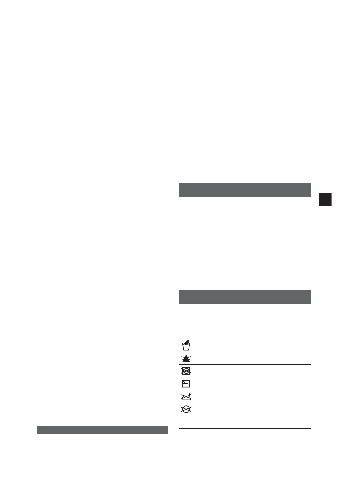 • Przestrzegać wskazówek dotyczących prania pokrycia z
