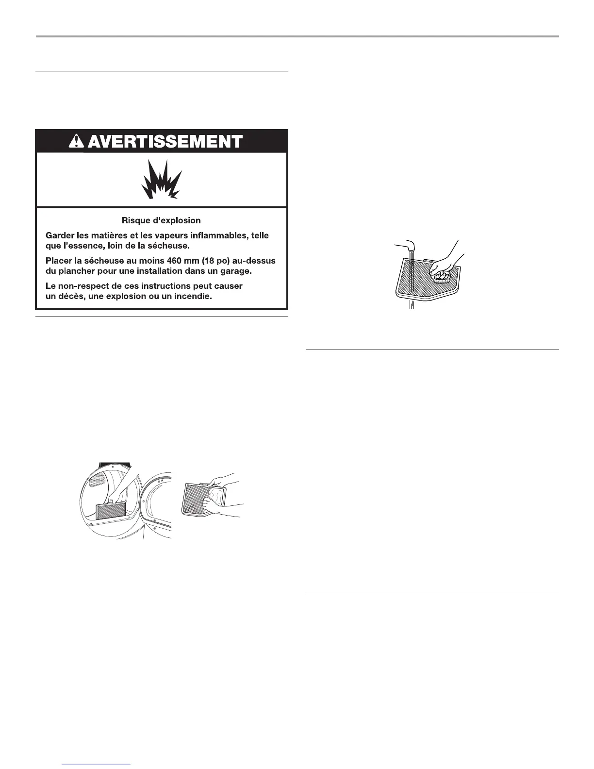 ■ Ne pas faire fonctionner la sécheuse avec un filtre à charpie