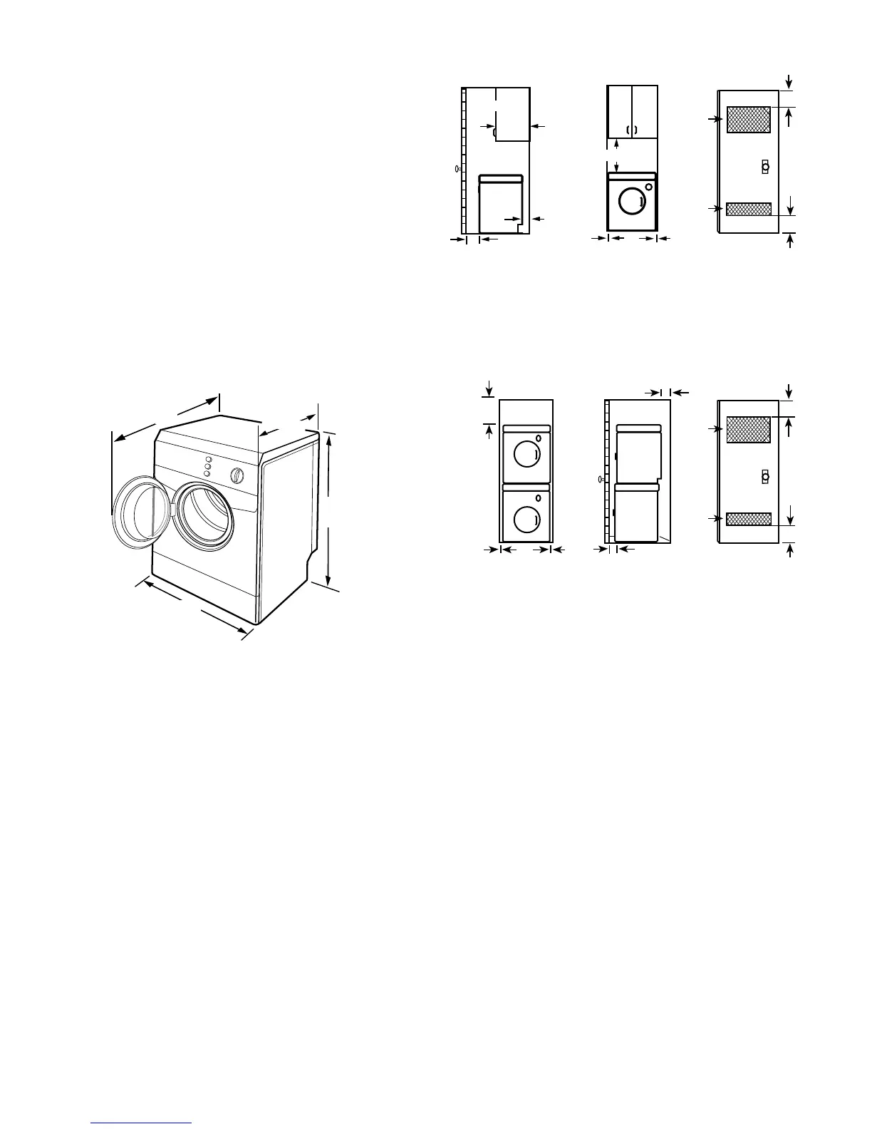■ Spacing of 1" (2.5 cm) on all sides of the dryer is