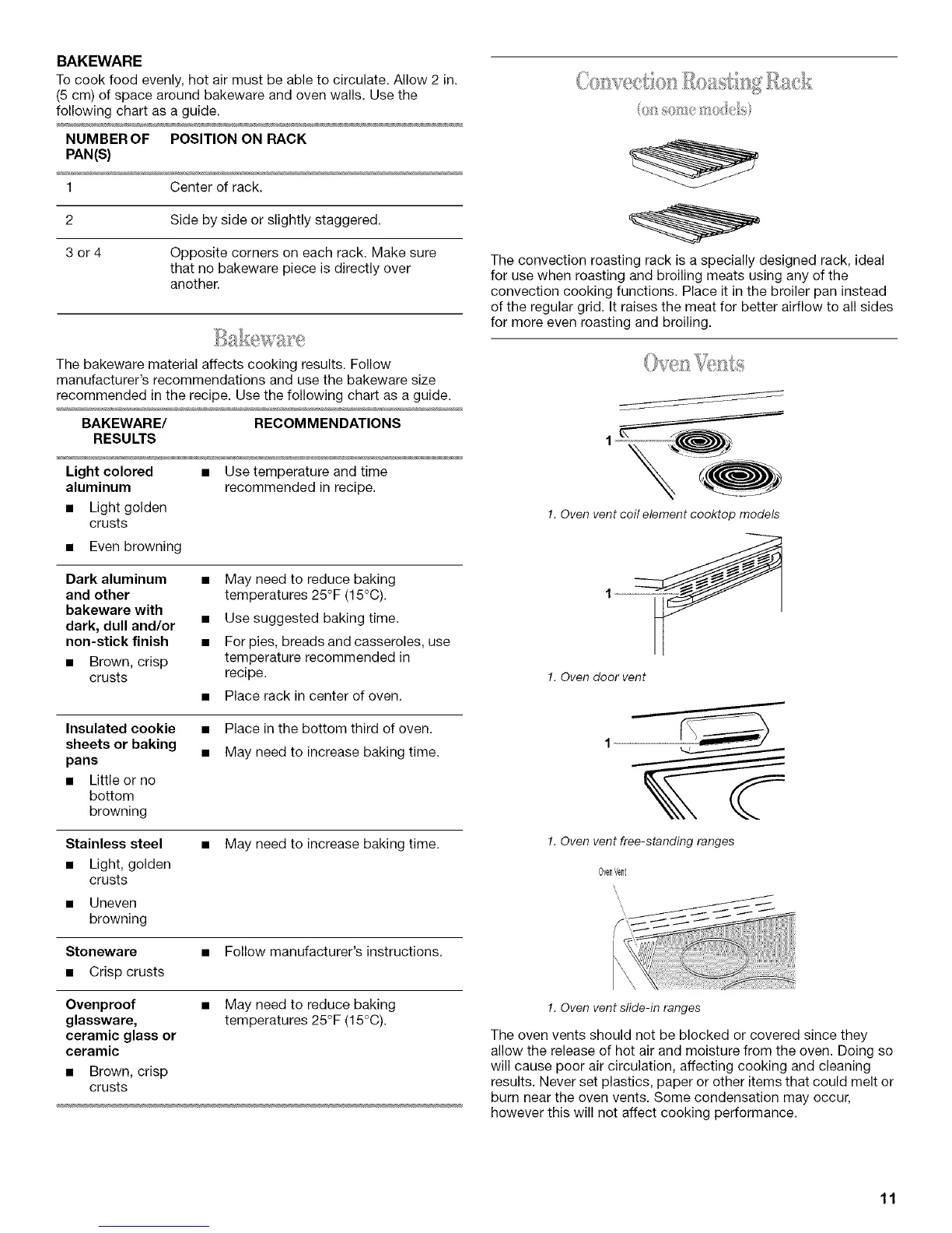 1. Oven vent free-standing ranges