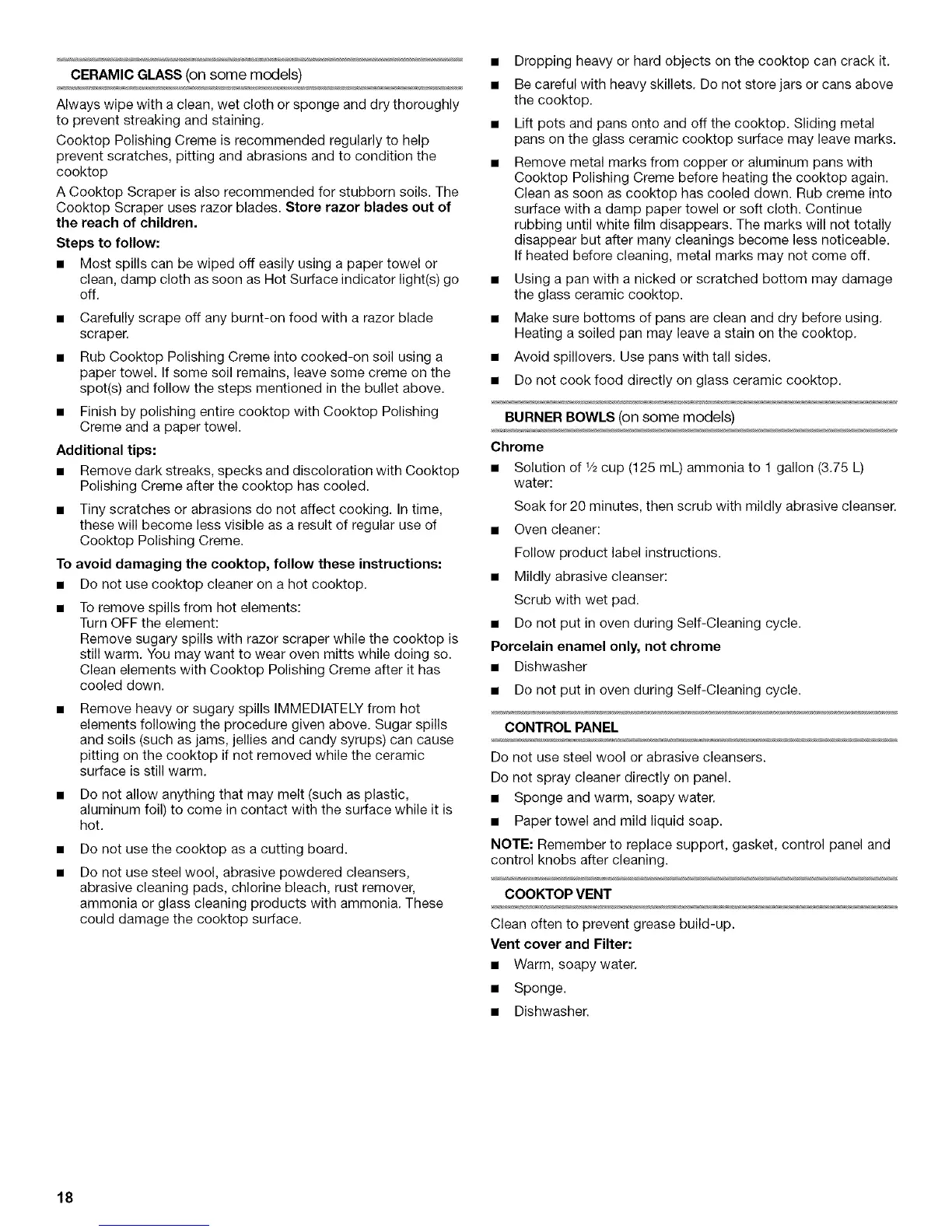 Cooktop Polishing Creme is recommended regularly to help