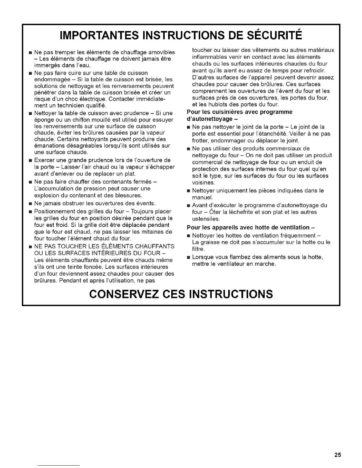 CONSERVEZ CES INSTRUCTIONS