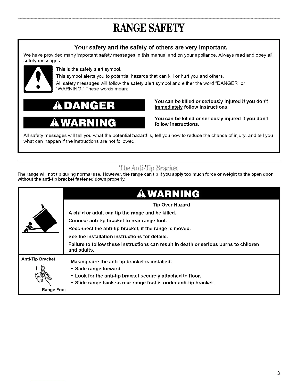 The rangewill not tip during normal use. However, the range can tip if you apply too much force or weight to the open door