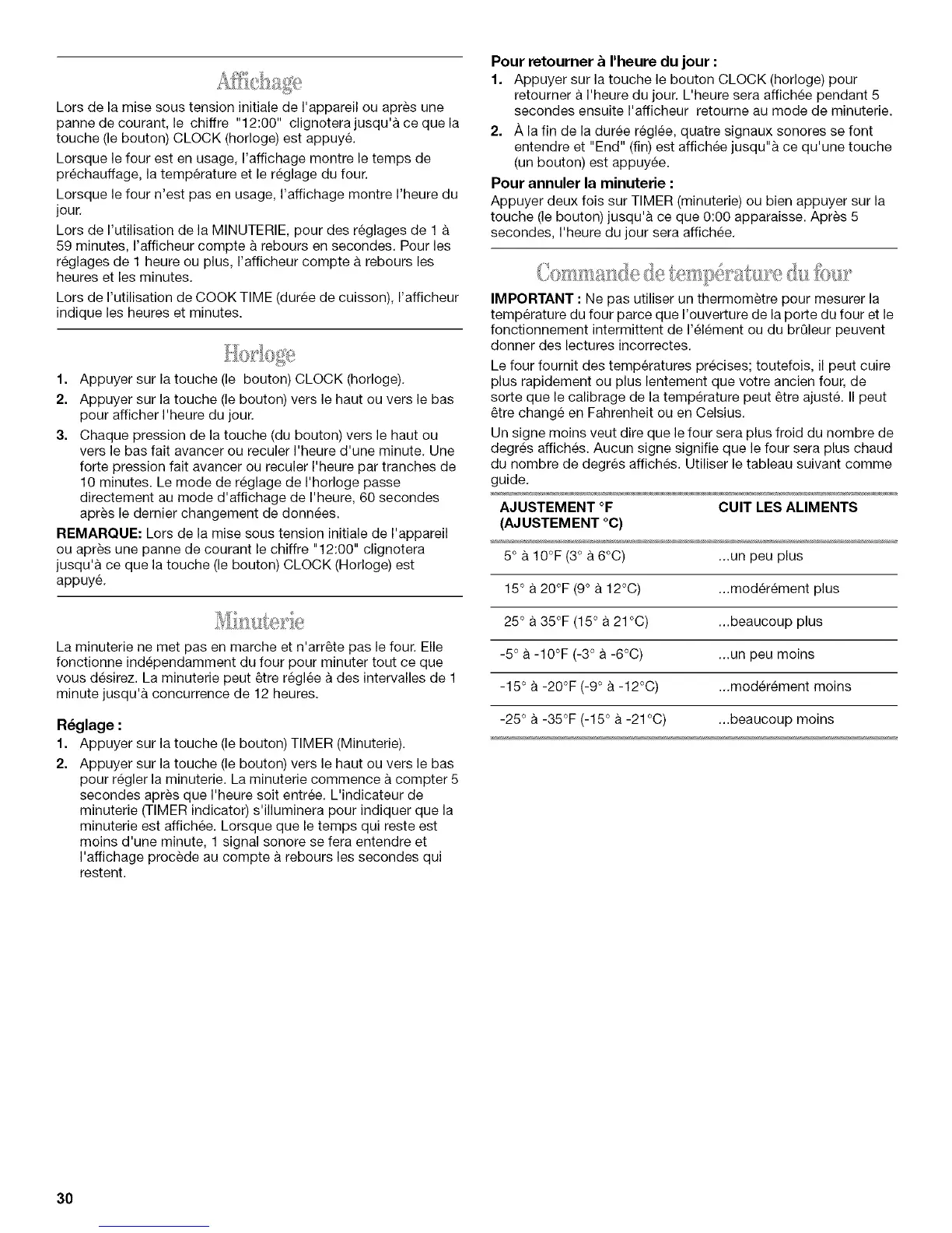 AJUSTEMENT °F CUlT LES ALIMENTS