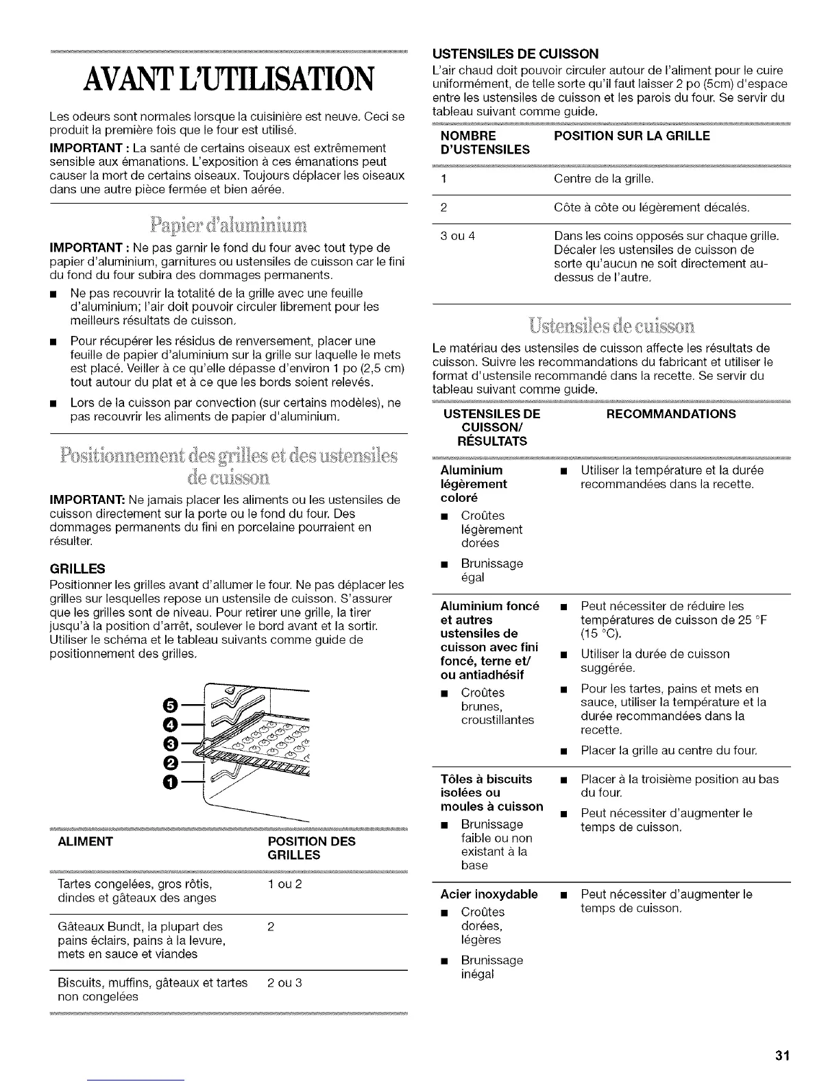 Positionner les grilles avant d'allumer le four. Ne pas deplacer les