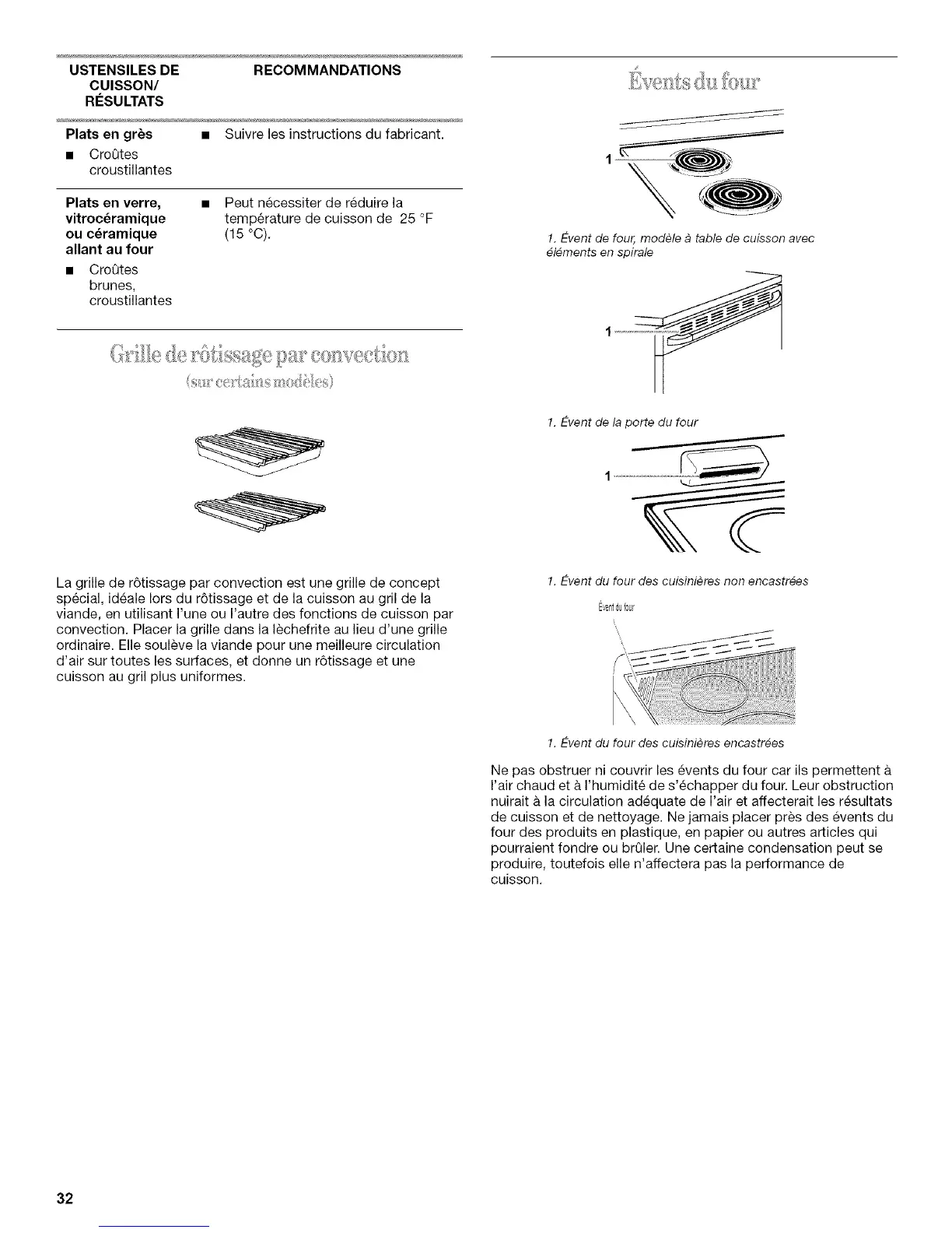 Ne pas obstruer ni couvrir les events du four car ils permettent &