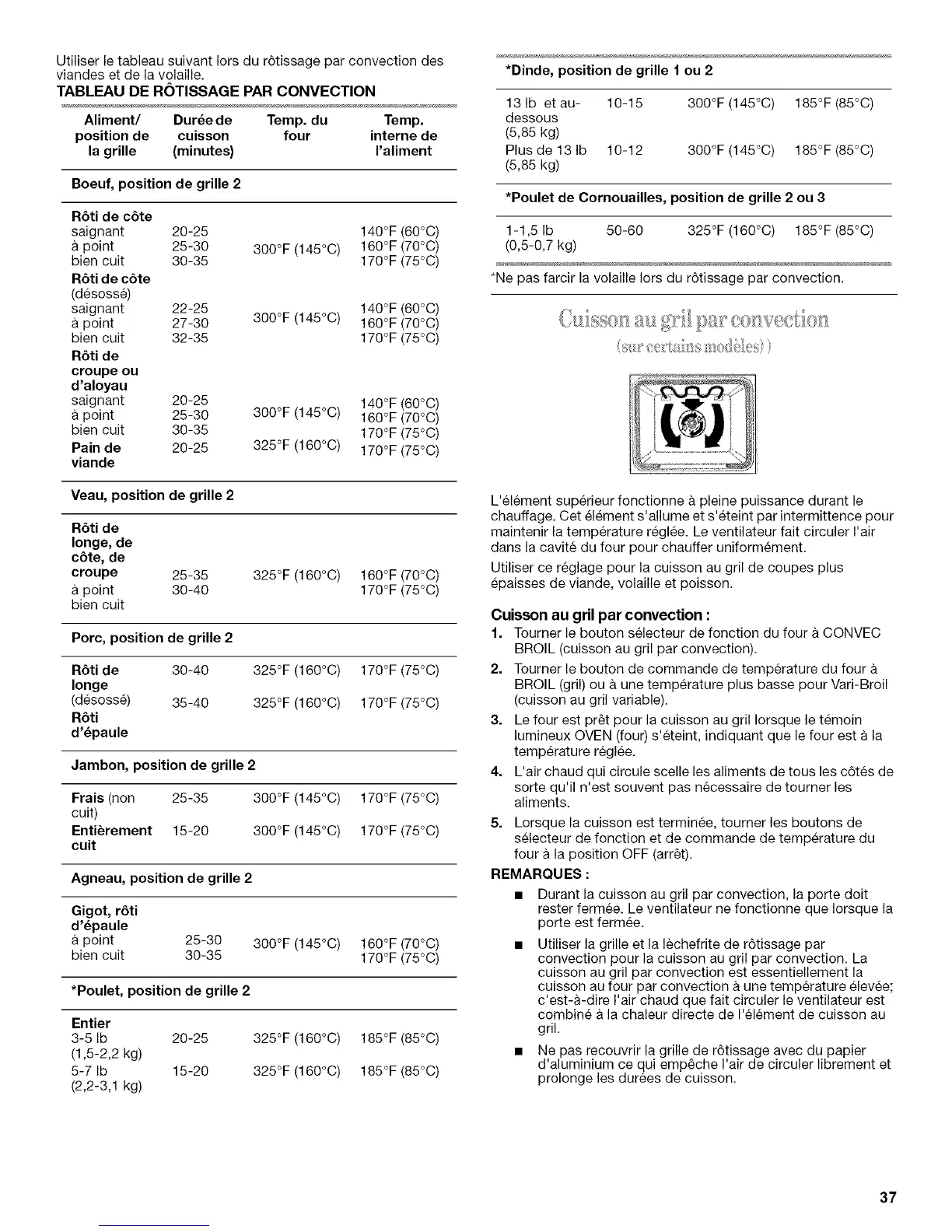 *Ne pas farcir la volaille Iors du r6tissage par convection.