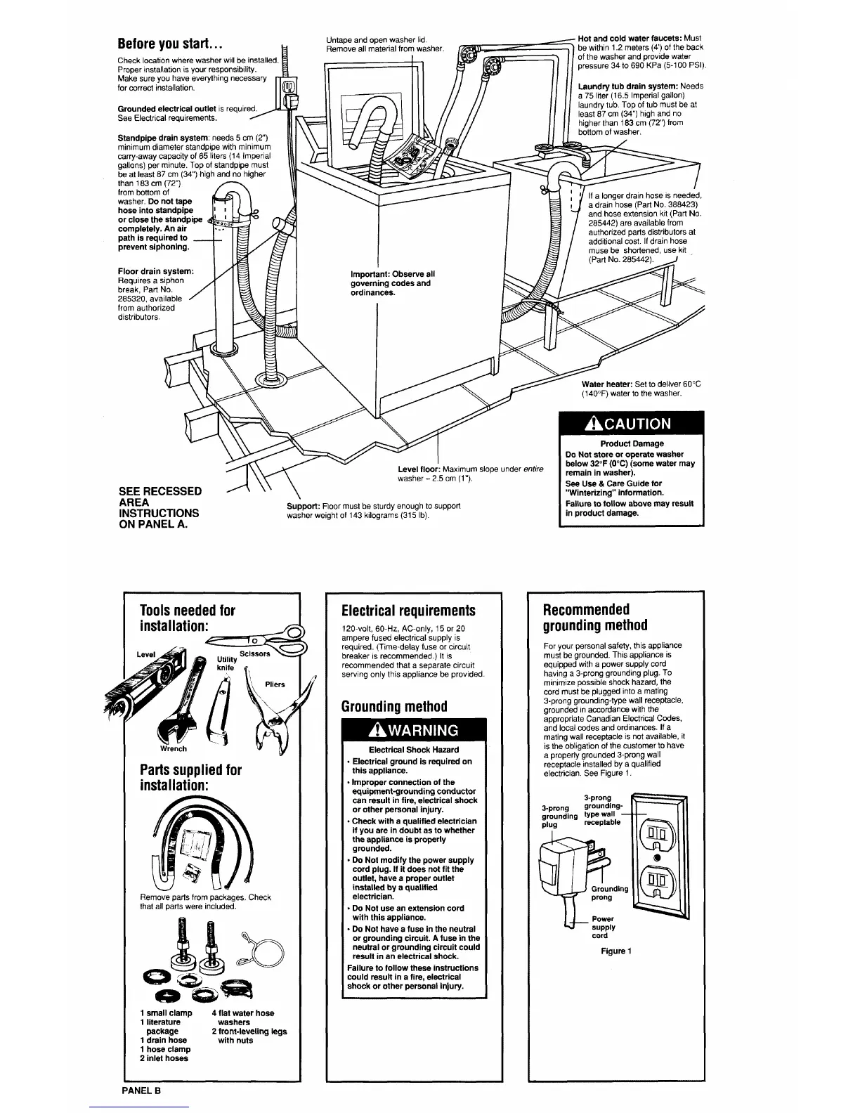 Check locationwhere washer will be installed.