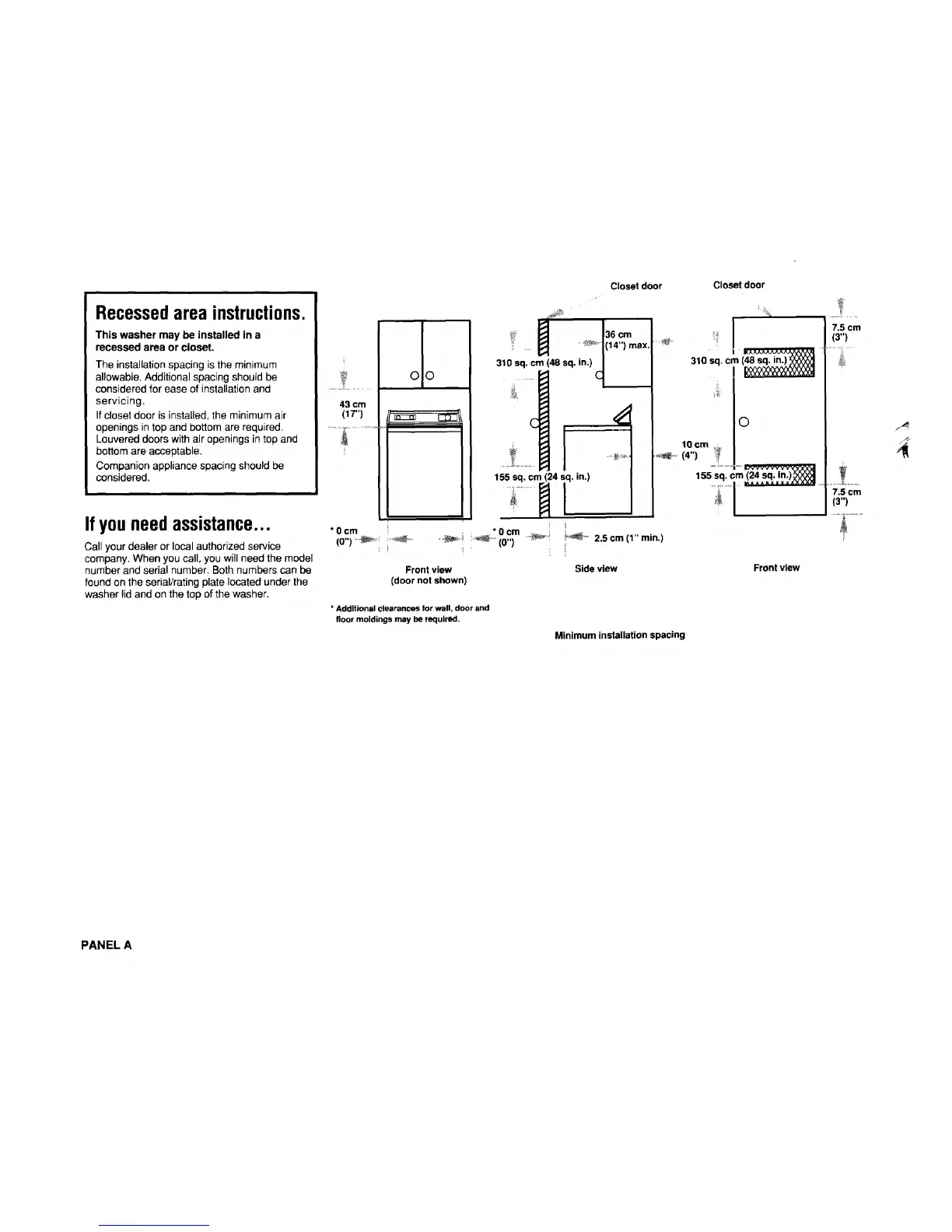 " Additional clearances for wall, door and