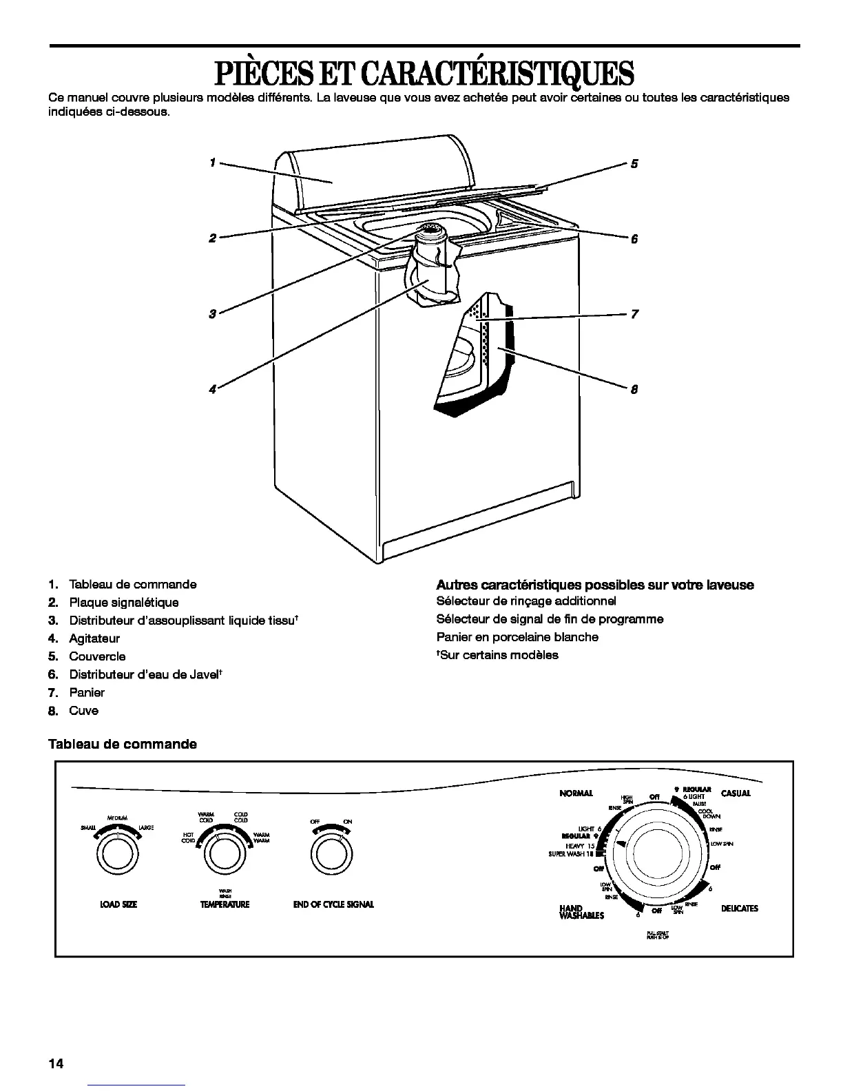Ce manuel couvre plusieum mod61es diff6mnts. La laveuse que vous avez achet6e peut avoir certaines ou toutes les caract6dstiques