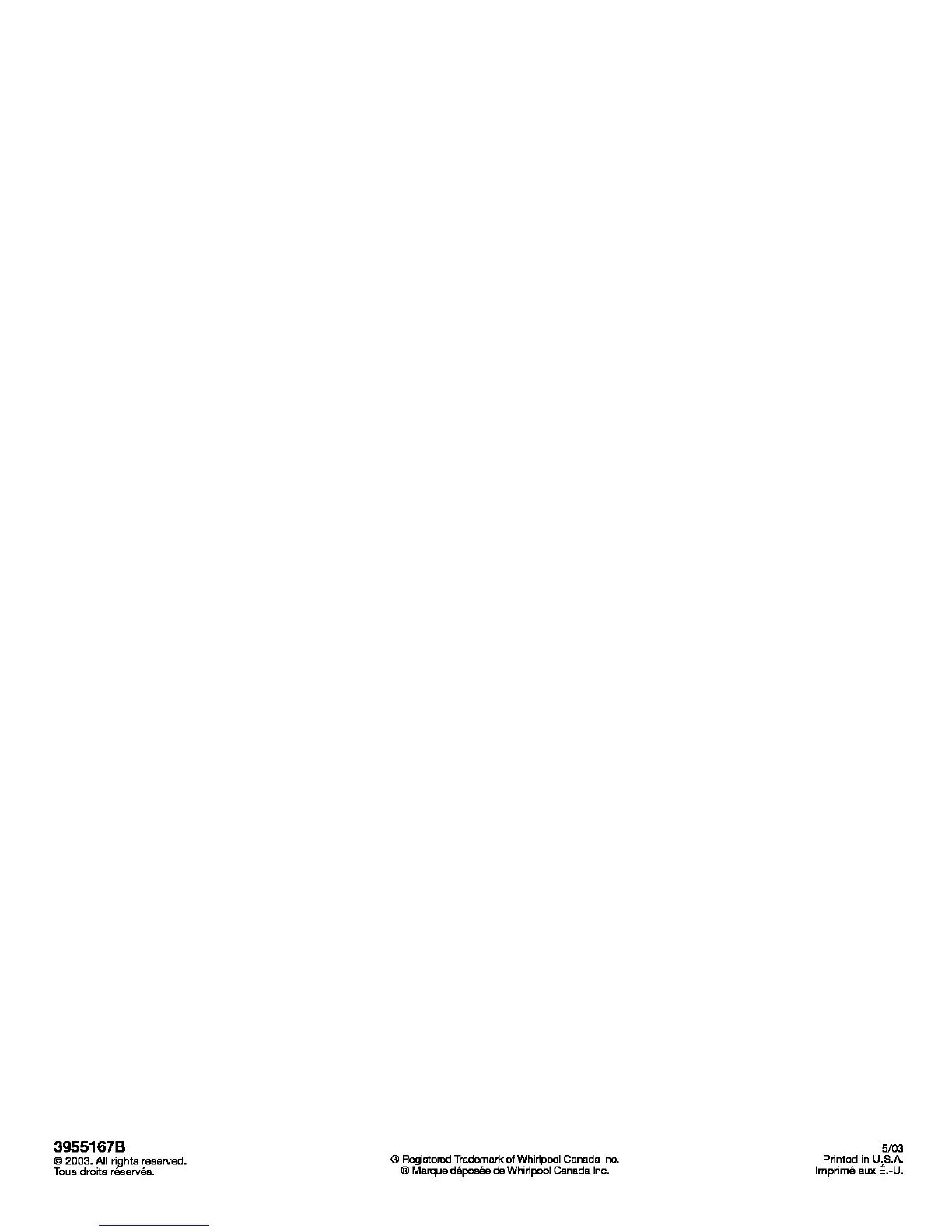 © 2003. All rights reserved. ® RegisteredTrademark of Whirlpool Canada Inc. Printed in U.S.A.