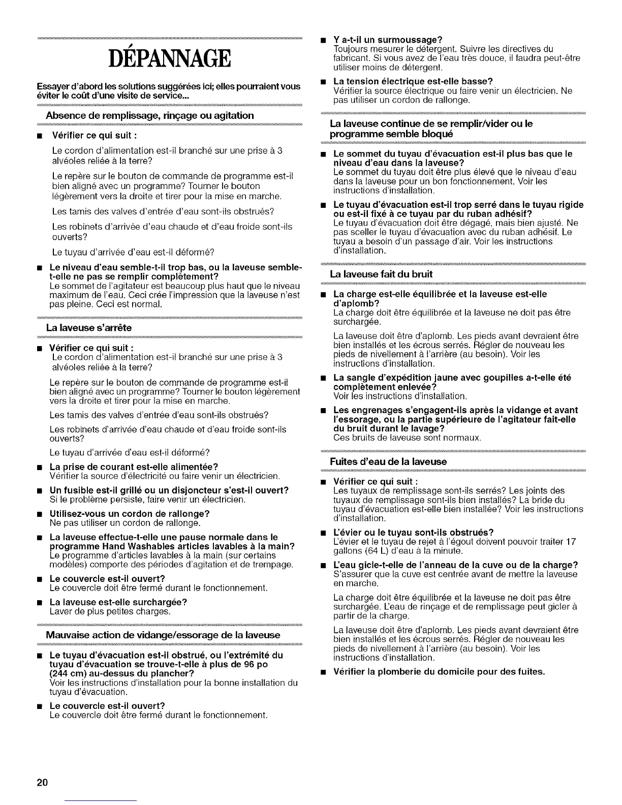 La charge dolt _tre equilibree et la laveuse ne dolt pas _tre