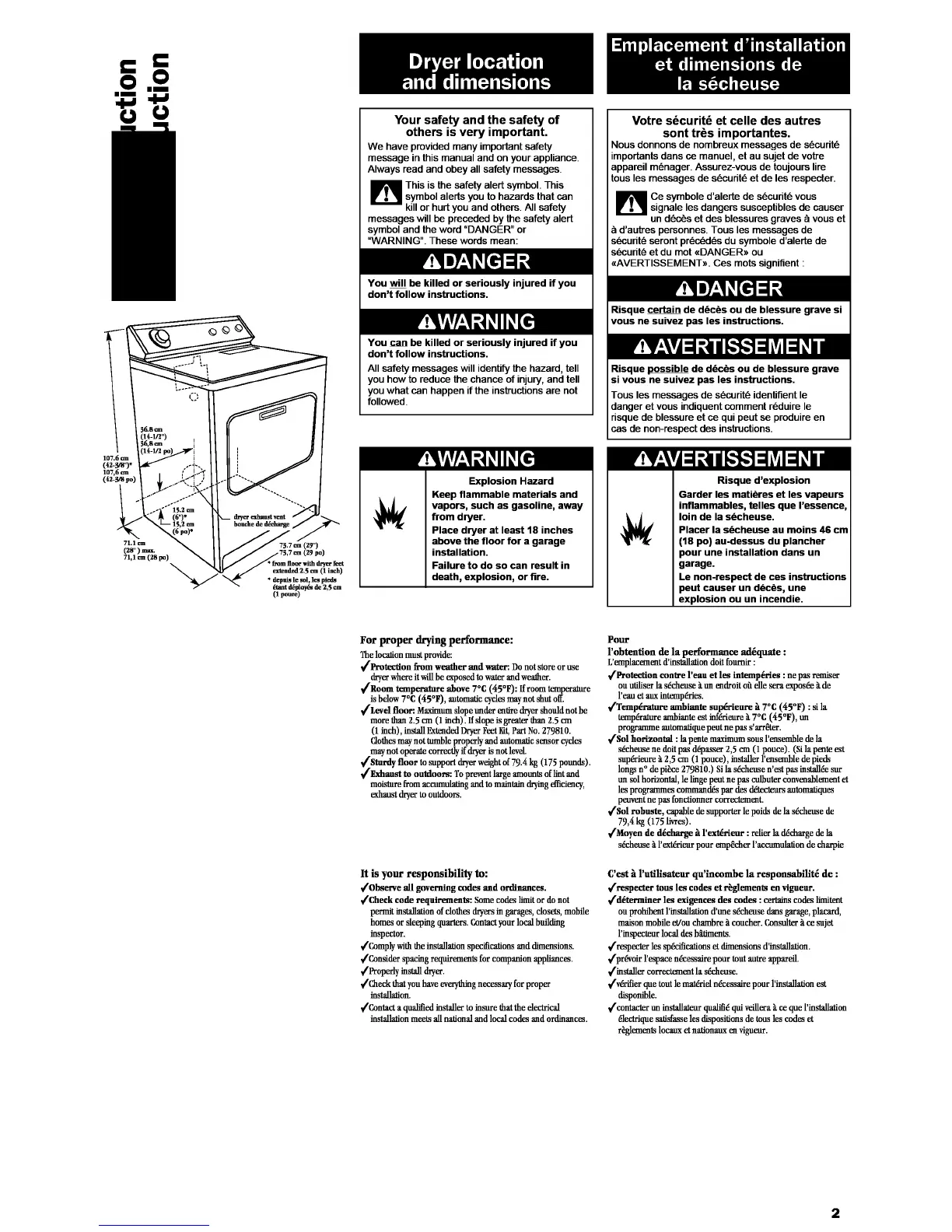 _/Stordy floor to supportdryerweightof79.4 kg (175 pounds).