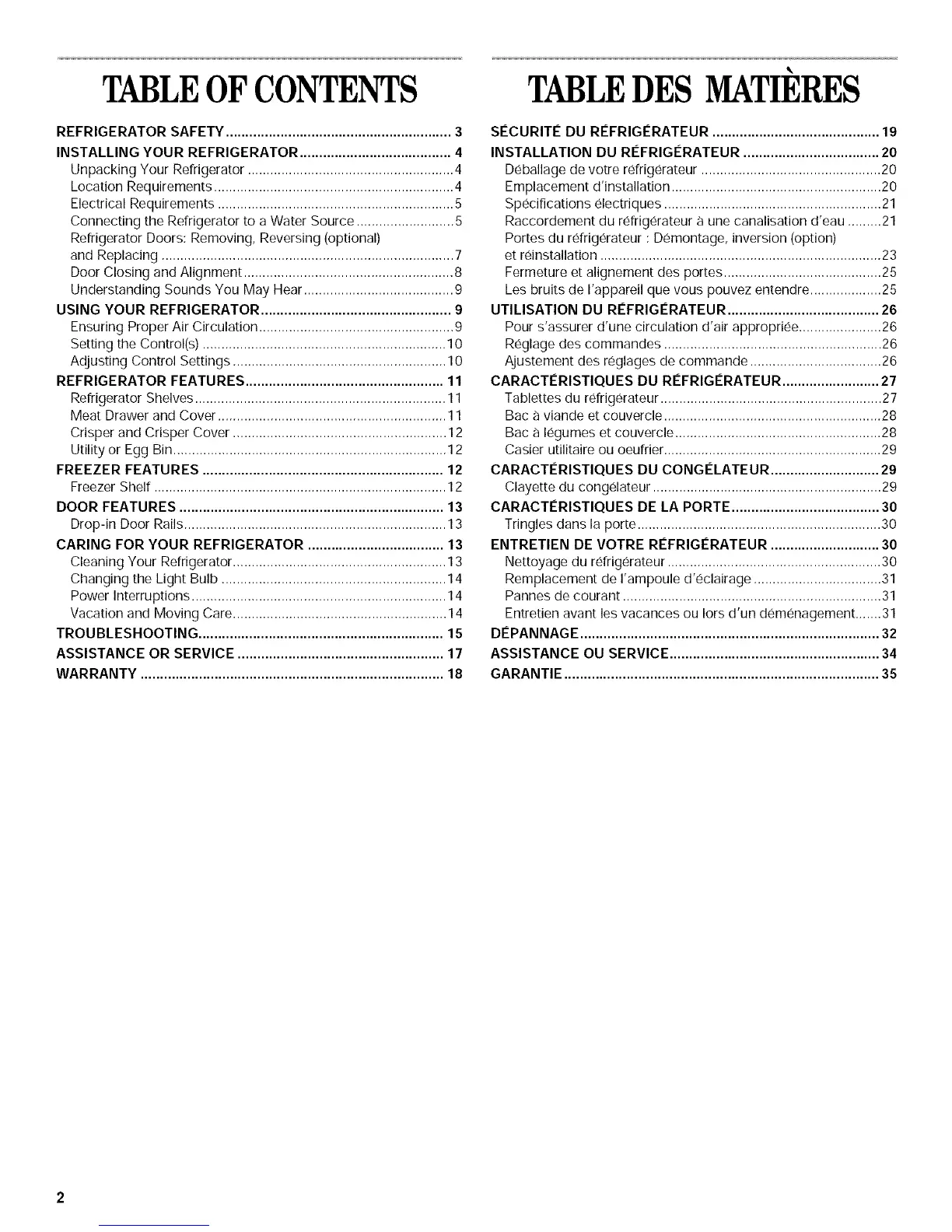 FREEZER FEATURES .............................................................. 12