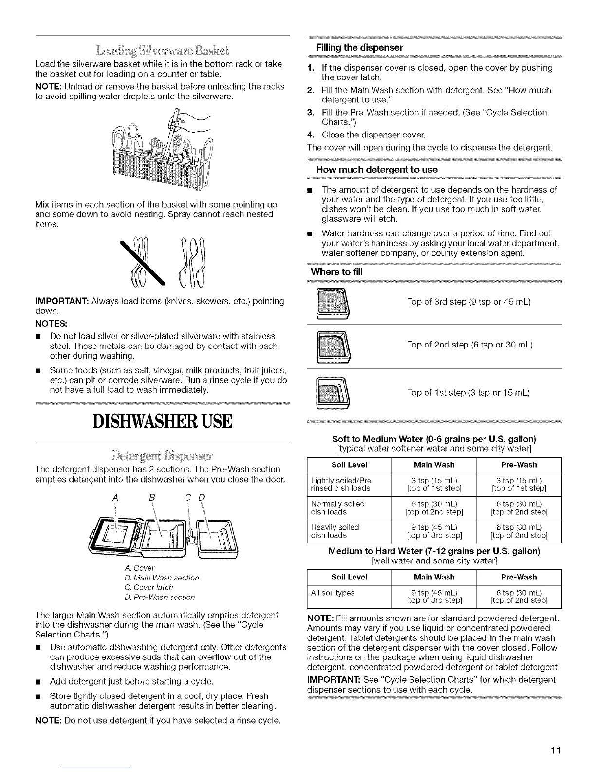 NOTE: Fill amounts shown are for standard powdered detergent.