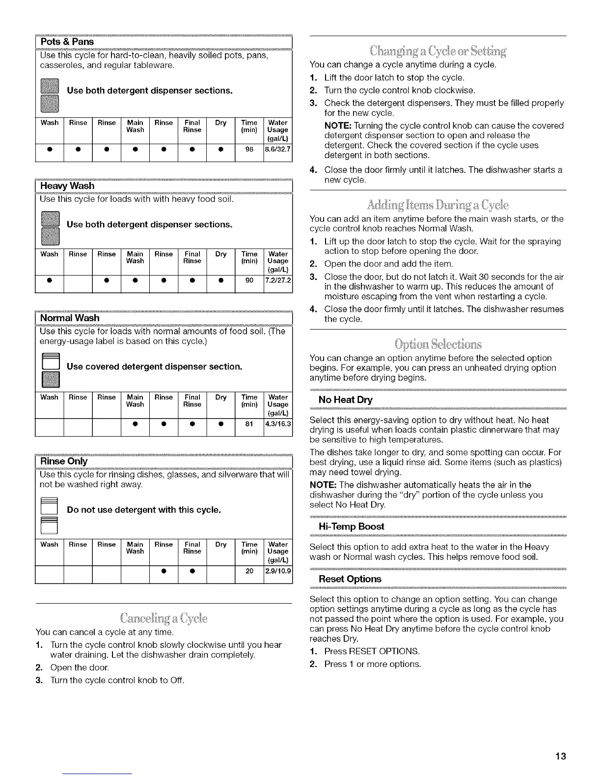 Use this cycle for hard-to-clean, heavily soiled pots, pans,