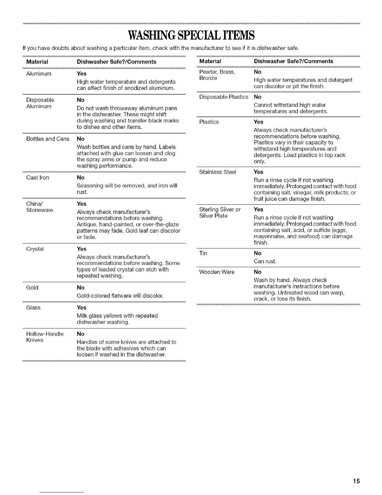 If you have doubts about washing a particular item, check with the manufacturer to see if it is dishwasher safe.
