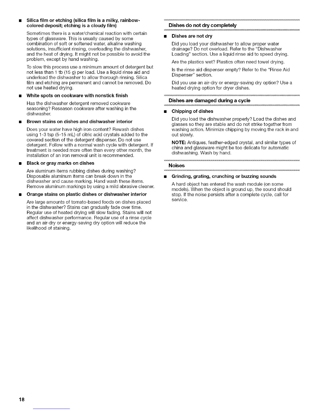 underload the dishwasher to allow thorough rinsing. Silica