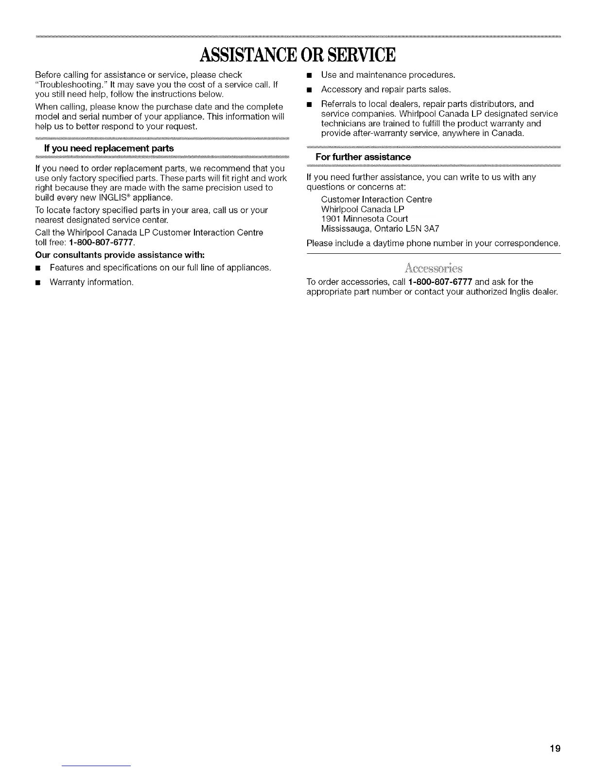 Call the Whirlpool Canada LP Customer Interaction Centre