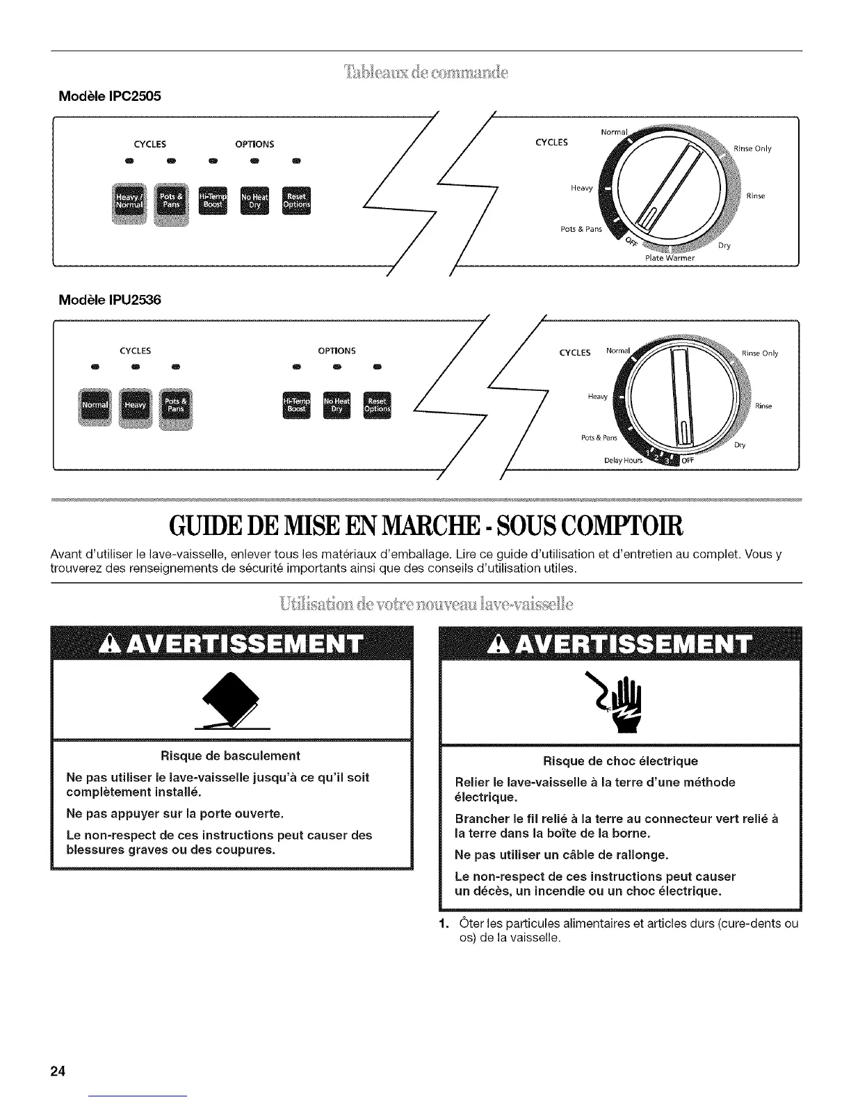 Avant d'utiliser le lave-vaisselle, enlever tousles materiaux d'emballage. Lire ce guide d'utilisation et d'entretien au complet. Vous y
