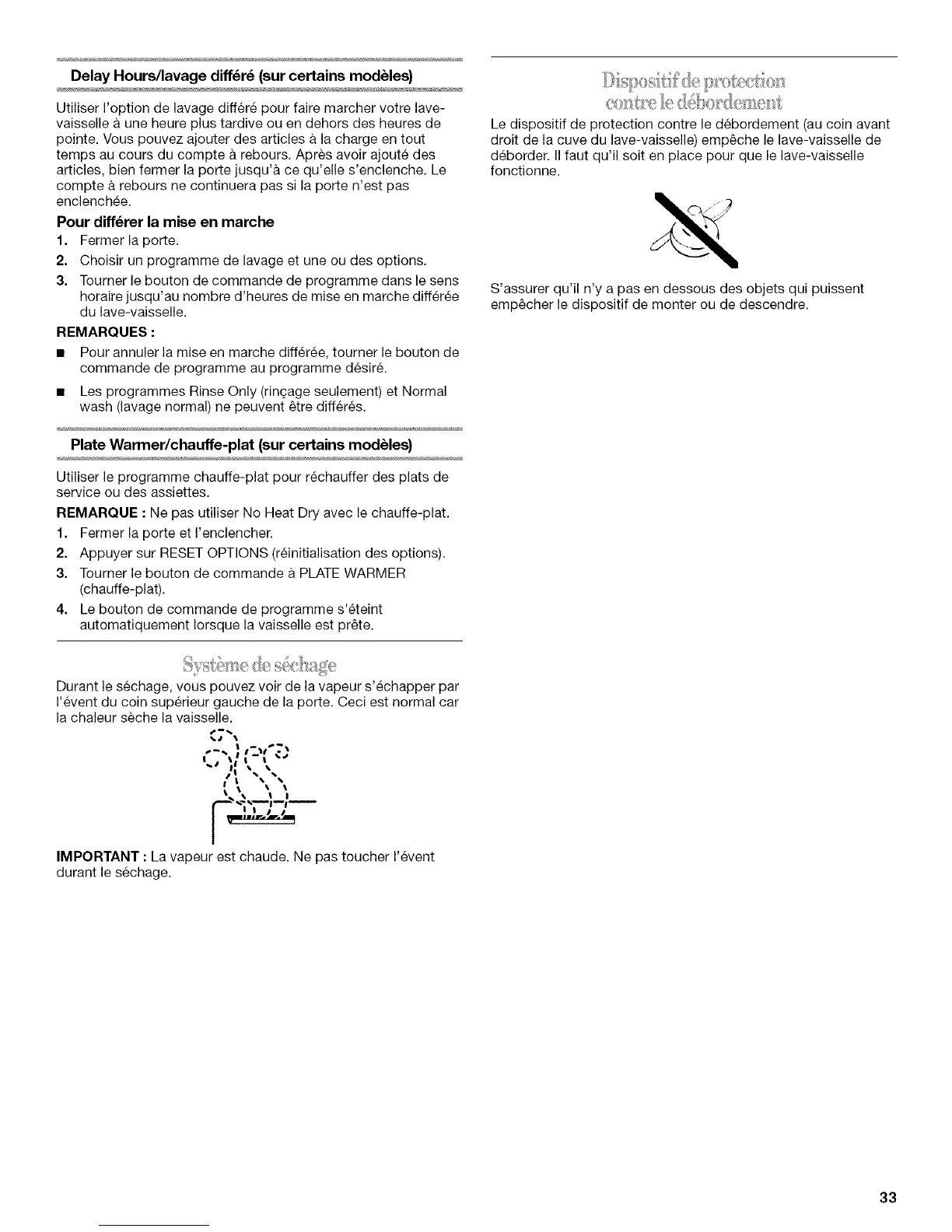 REMARQUE : Ne pas utiliser No Heat Dry avec le chauffe-plat.