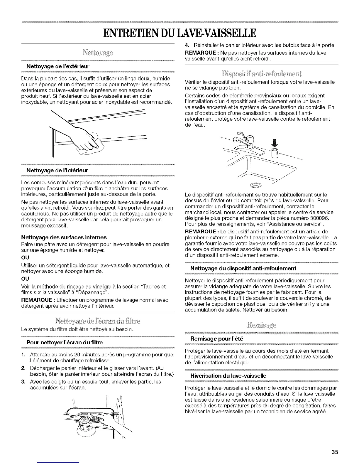 Verifier le dispositif anti-refoulement Iorsque votre lave-vaisselle