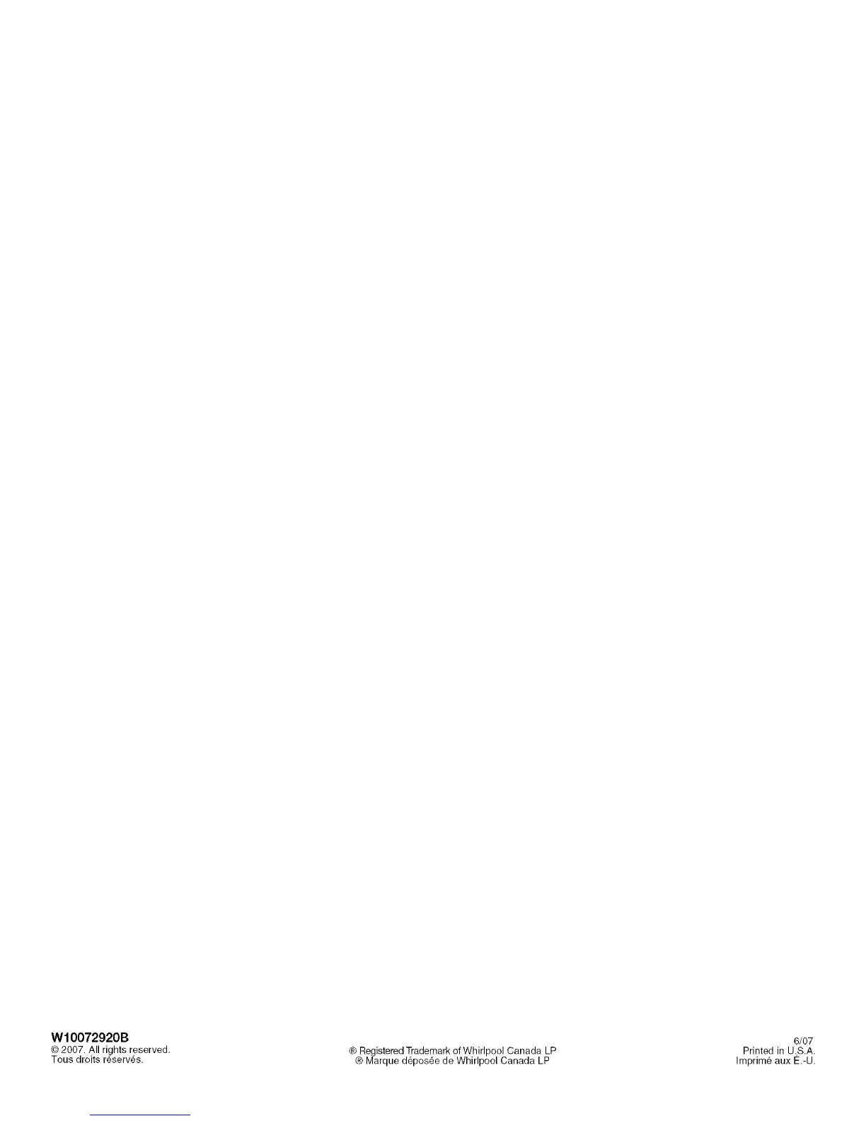 @2007. All rights reserved, ® Registered Trademark of Whirlpool Canada LP Printed in U,,S,A,