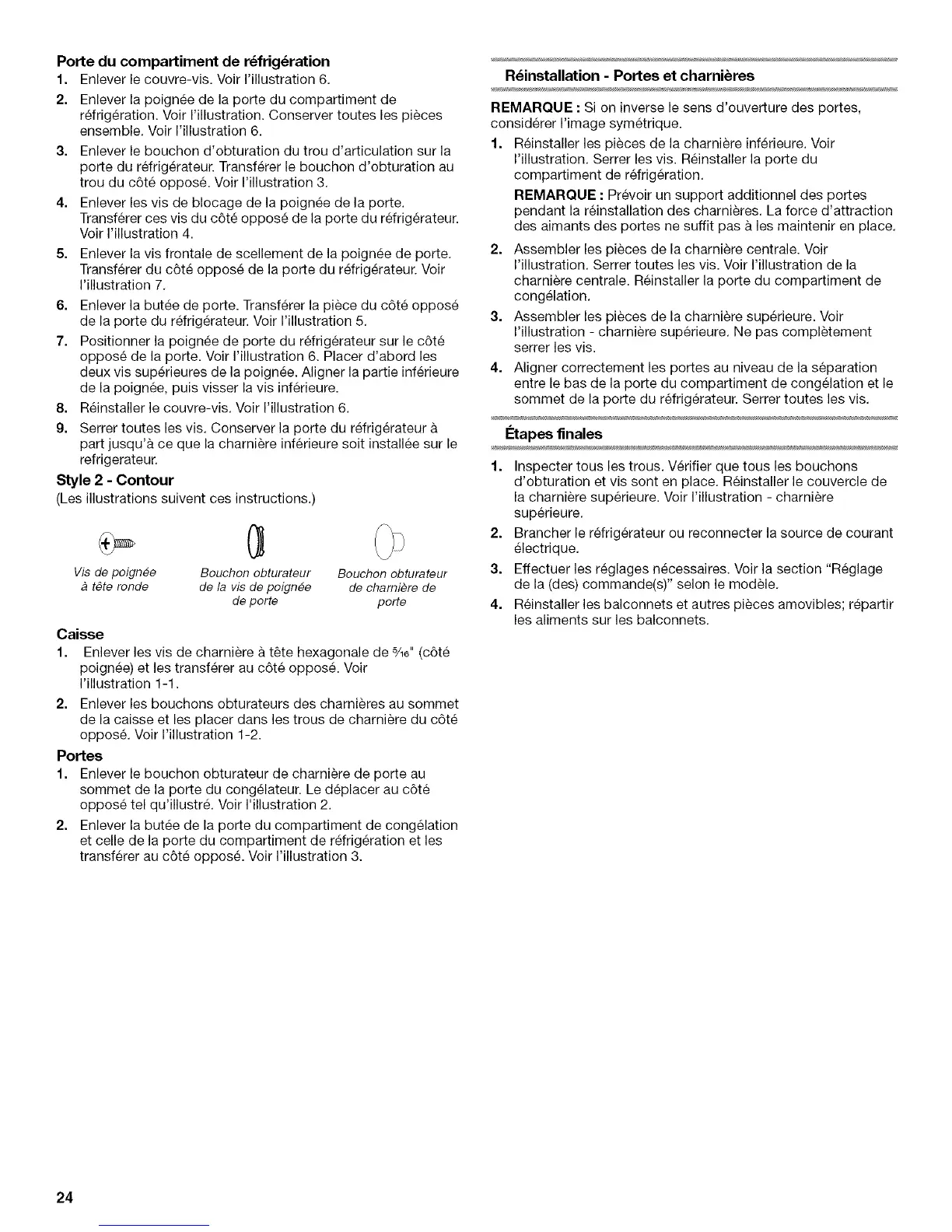 Transferer ces vis du c6te oppose de la porte du refrig6rateur.