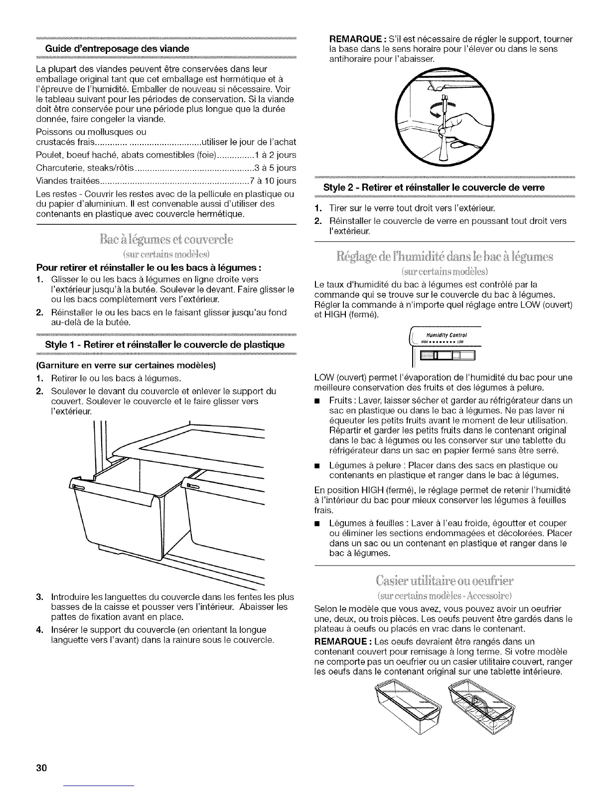 Pour retirer et r_installer le ou les bacs _ I_gumes :