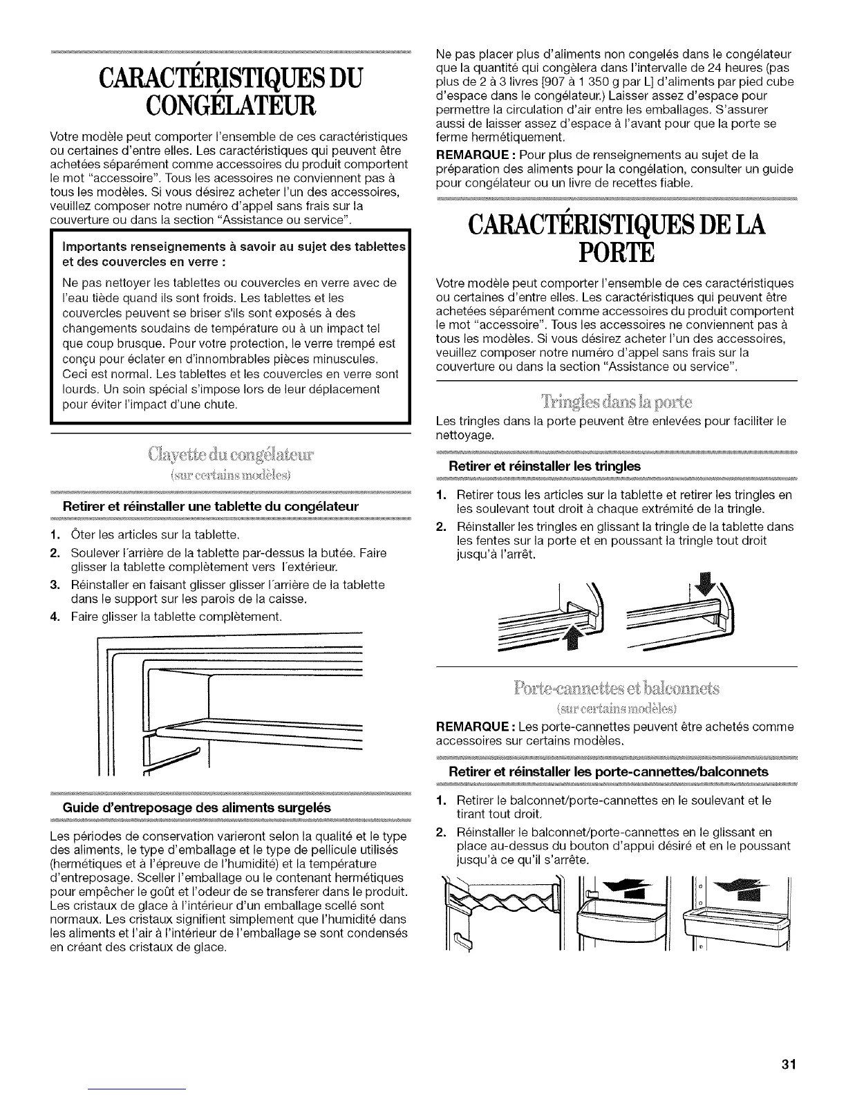 Les tringles dans la porte peuvent _tre enlevees pour faciliter le