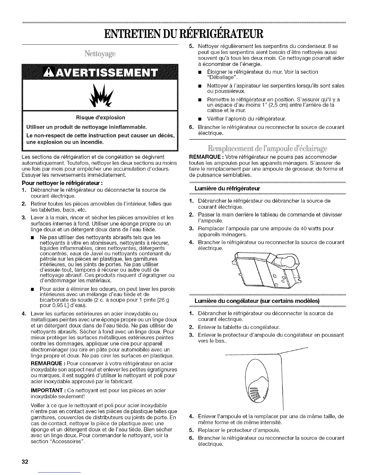 REMARQUE : Pour conserver a votre refrigerateur en acier