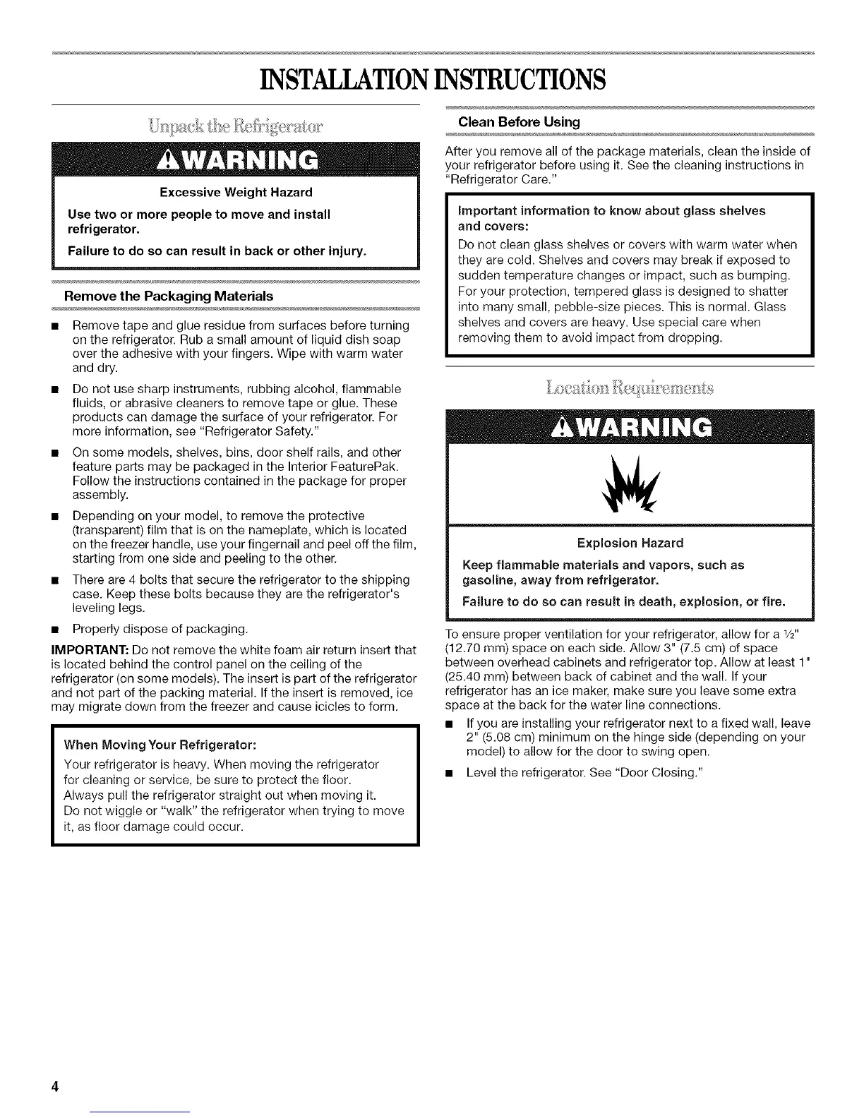 more information, see "Refrigerator Safety."