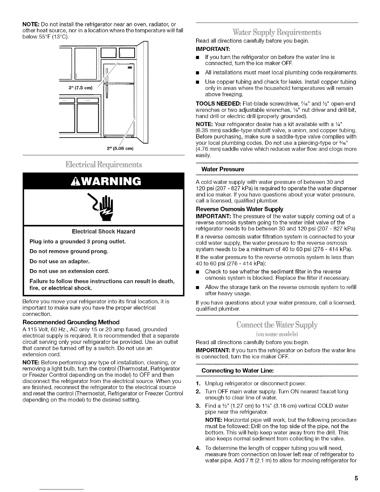 water pipe. Add 7 ft (2.1 m) to allow for moving refrigerator for