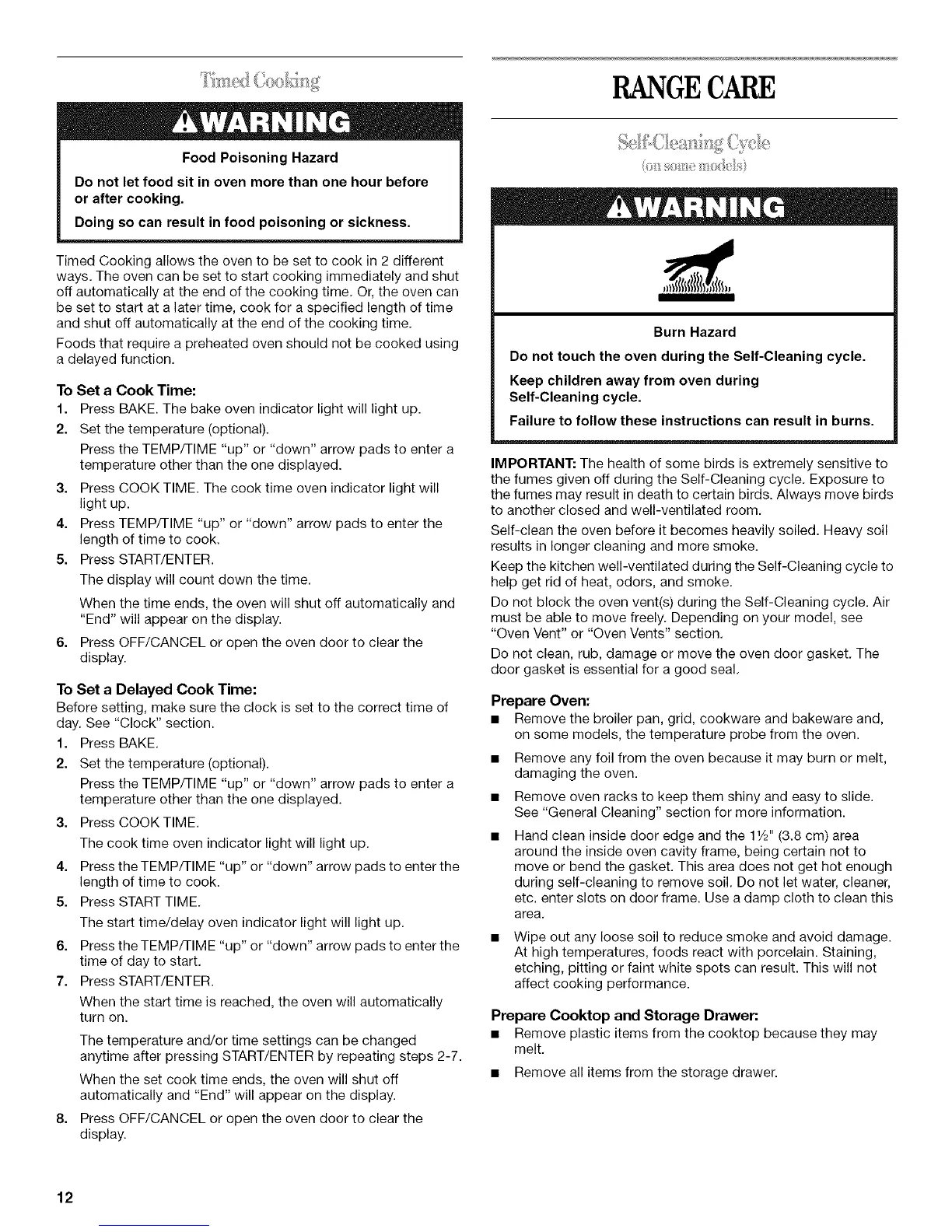 the fumes given off during the Self-Cleaning cycle. Exposure to