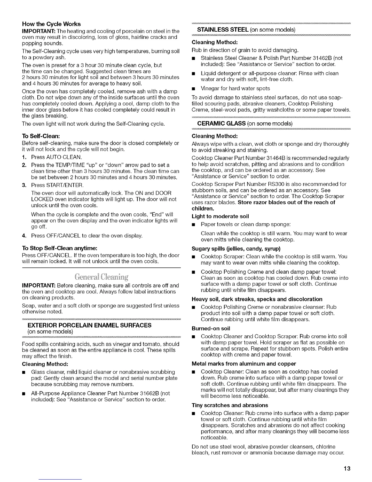 Cooktop Cleaner Part Number 31464B is recommended regularly