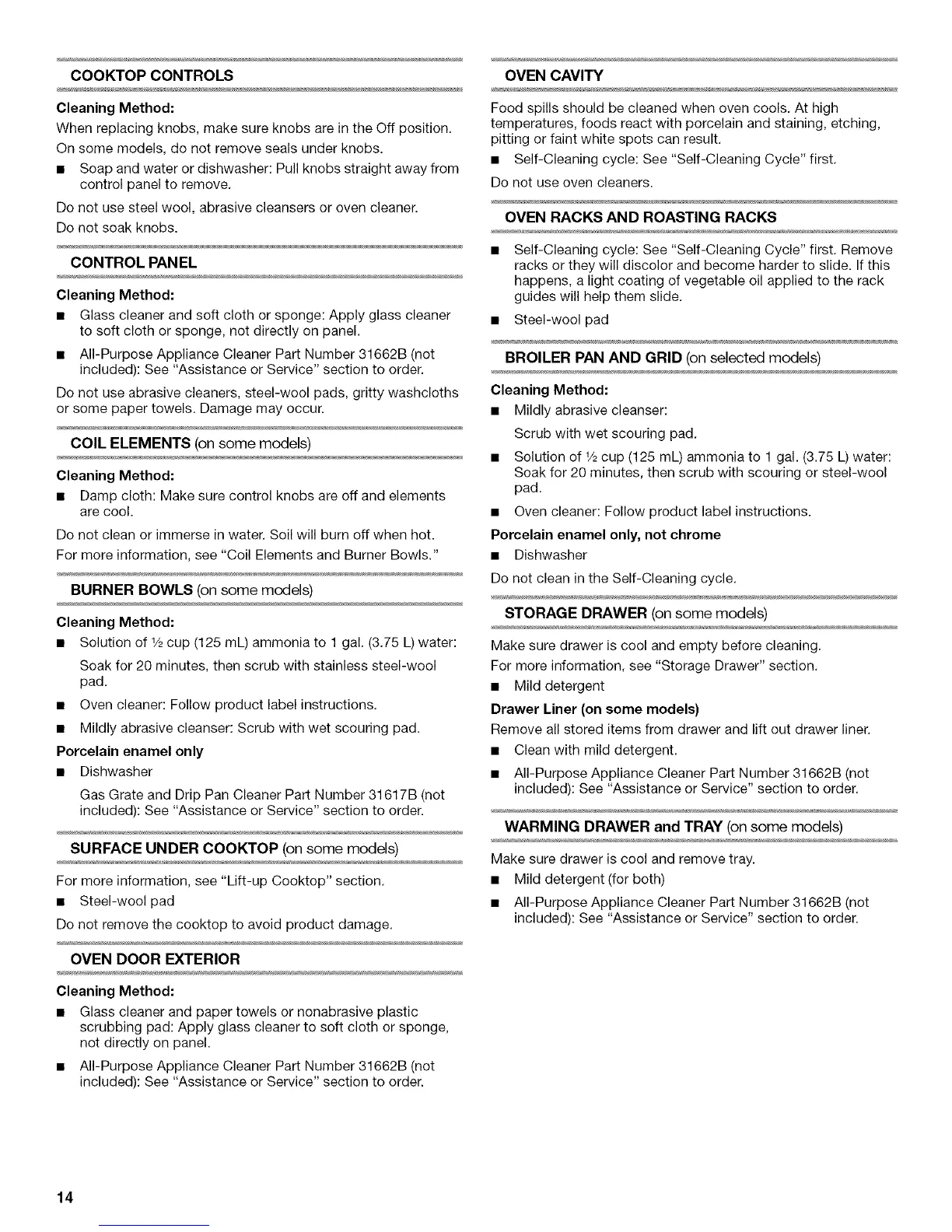 • All-Purpose Appliance Cleaner Part Number 31662B (not