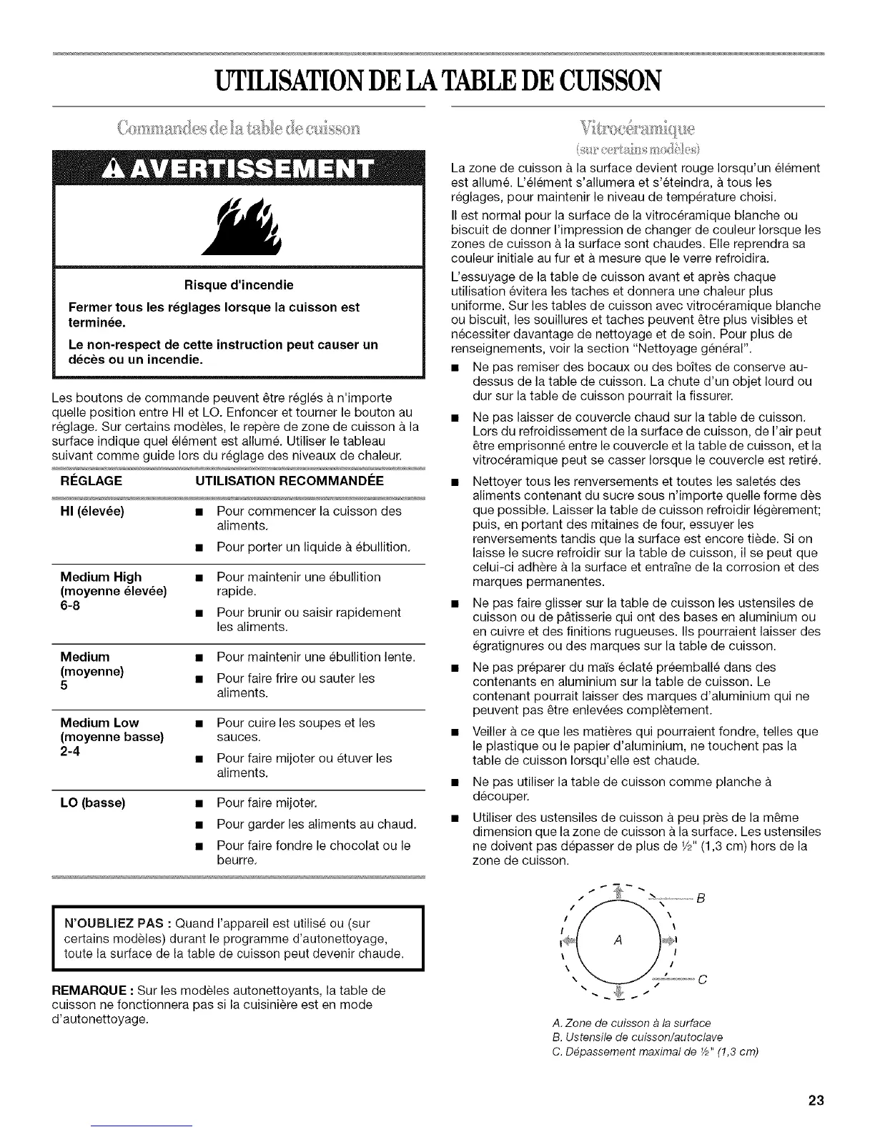 reglage. Sur certains modeles, le repere de zone de cuisson & la