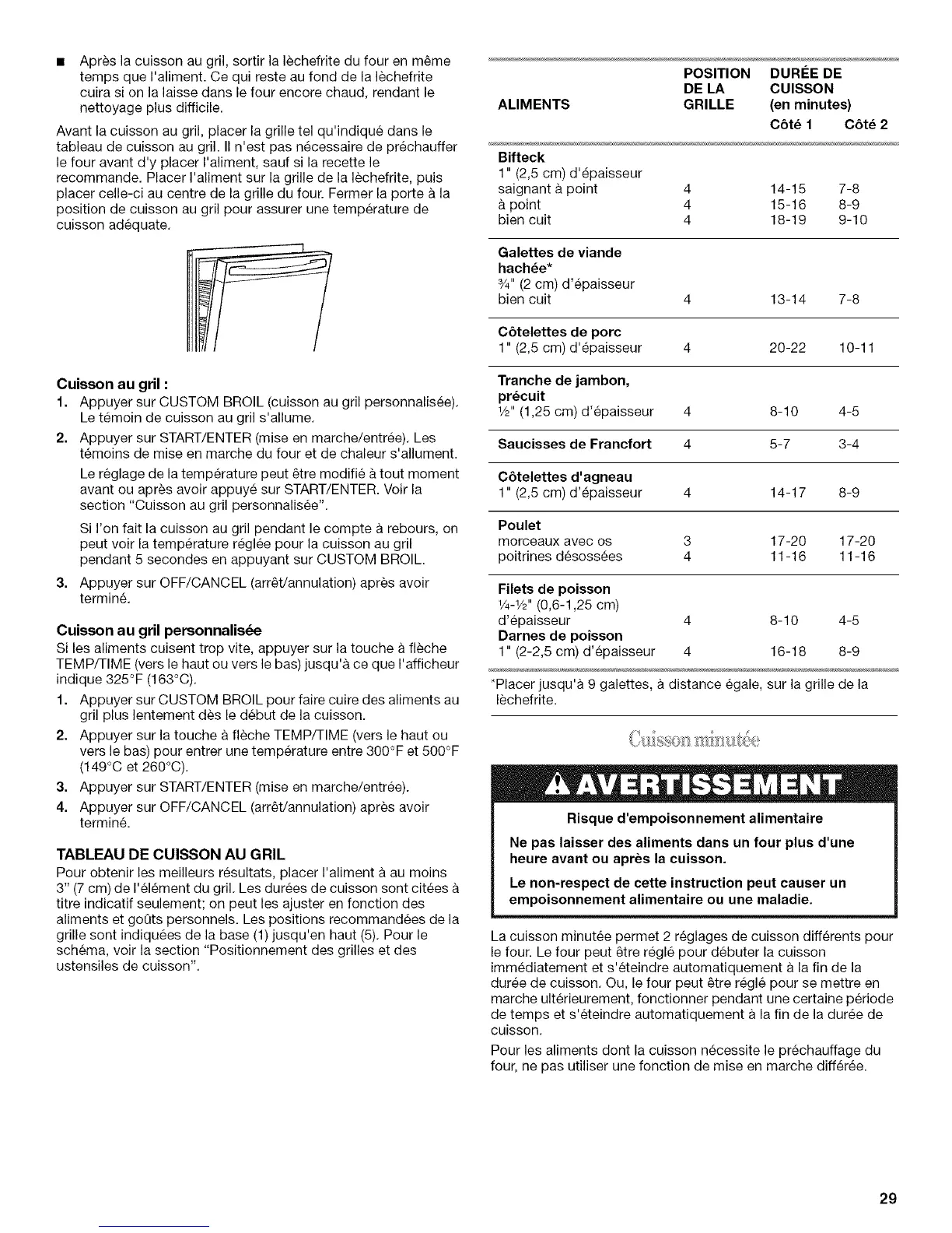 3" (7 cm) de I'el6ment du gril. Les durees de cuisson sont citees