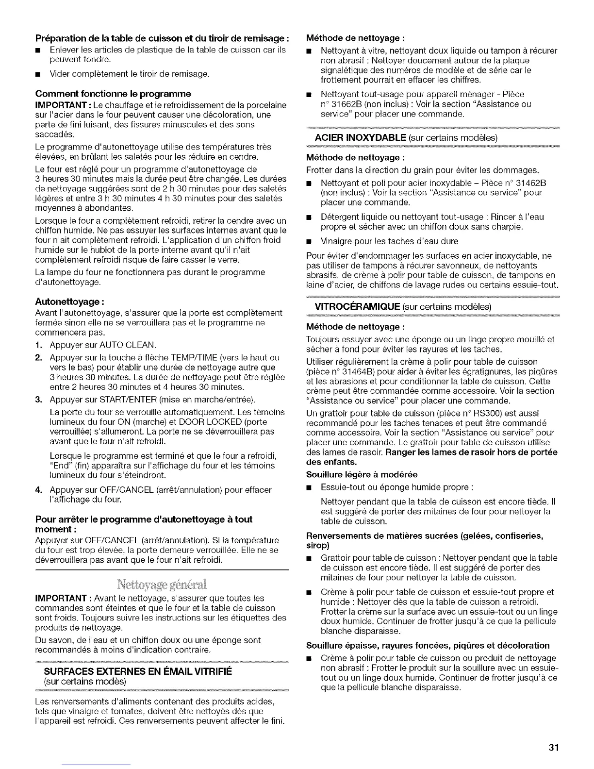 Nettoyer pendant que la table de cuisson est encore tiede. II