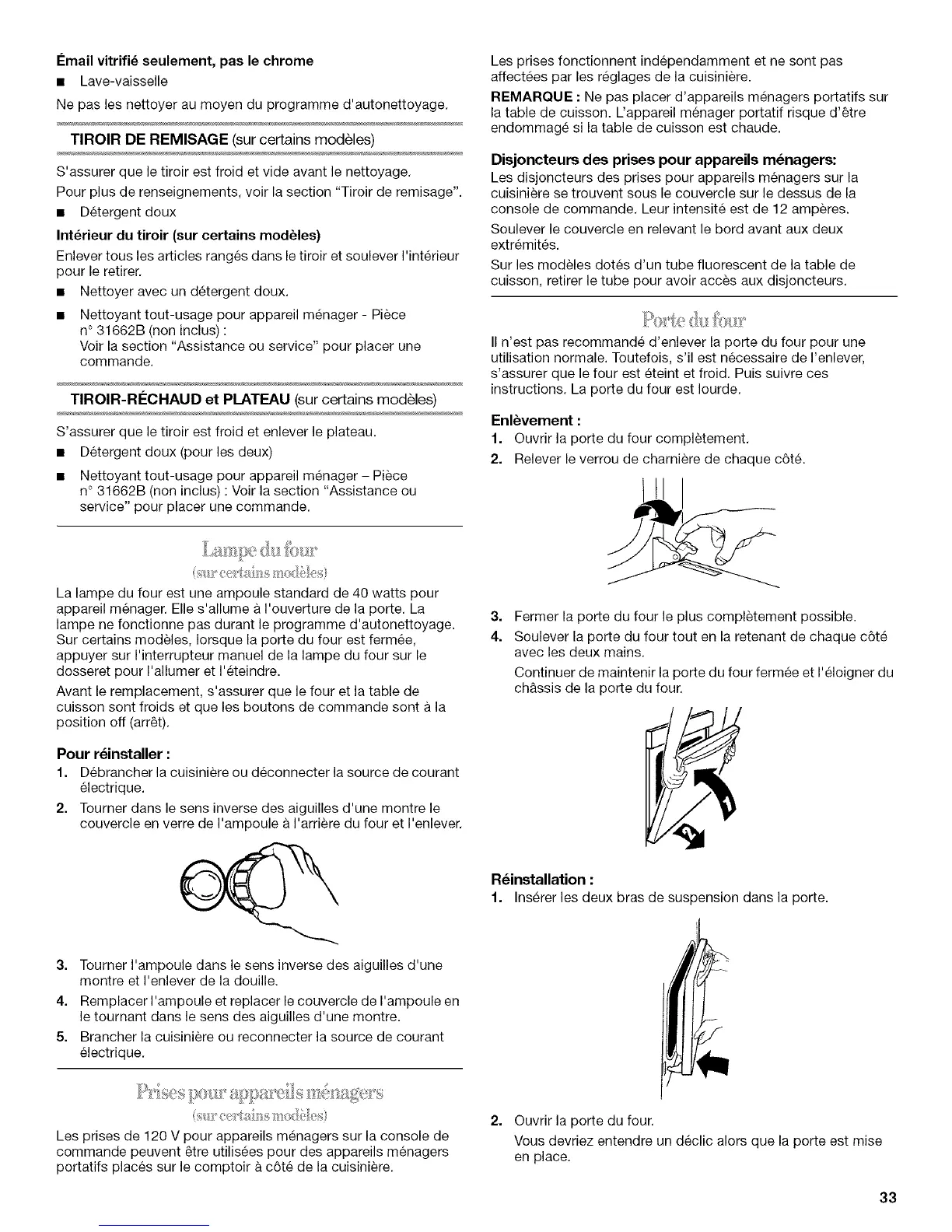 II n'est pas recommand£ d'enlever la porte du four pour une
