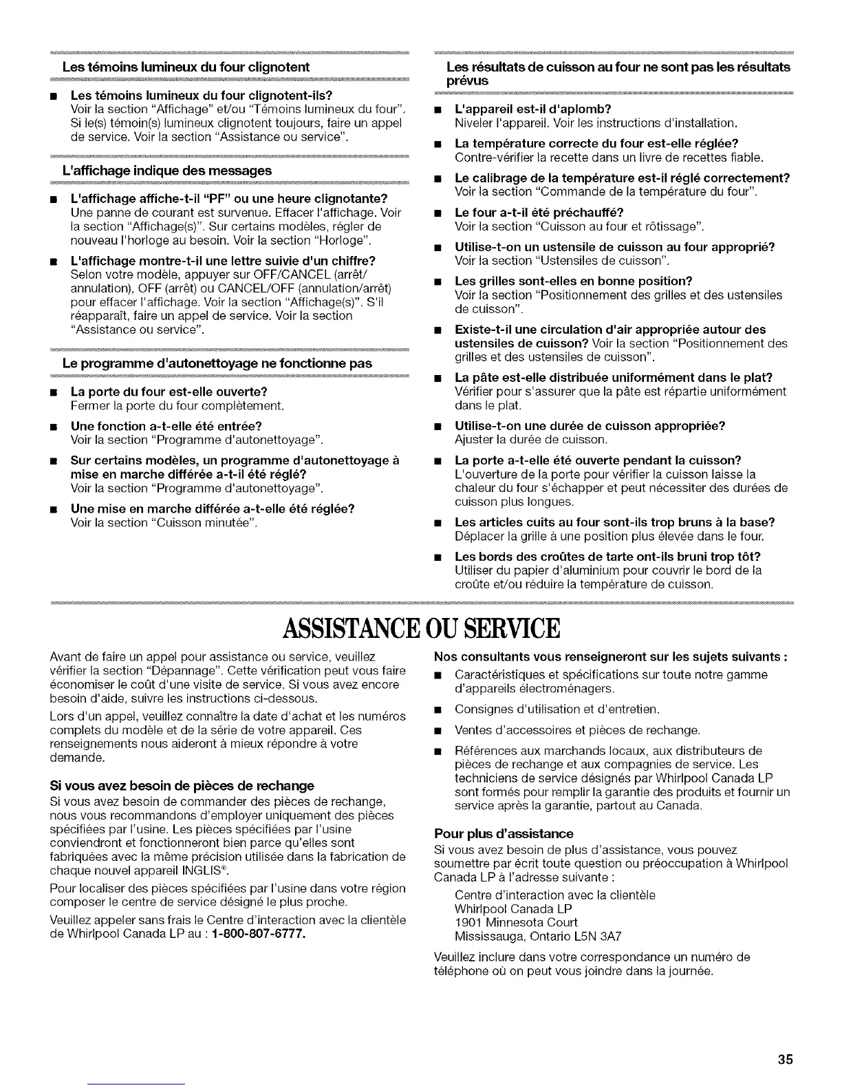 de Whirlpool Canada LP au : 1-800-807-6777.