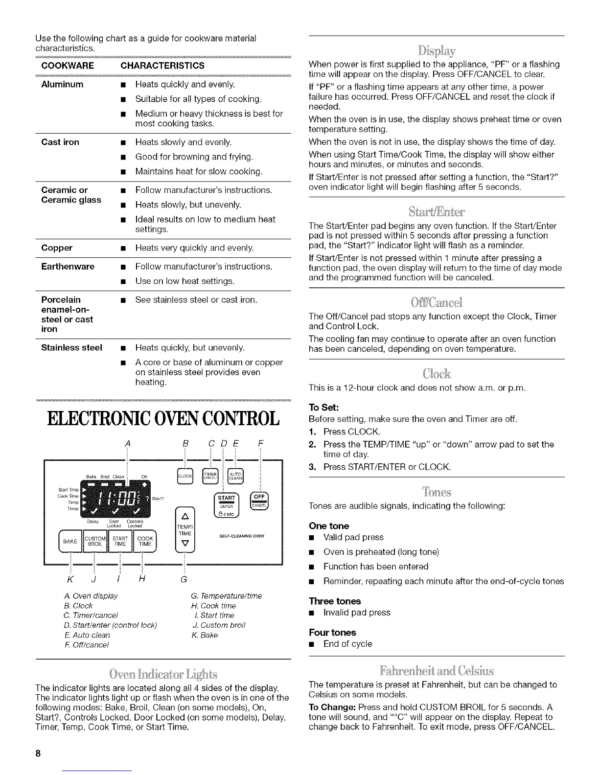 The Start/Enter pad begins any oven function. If the Start/Enter