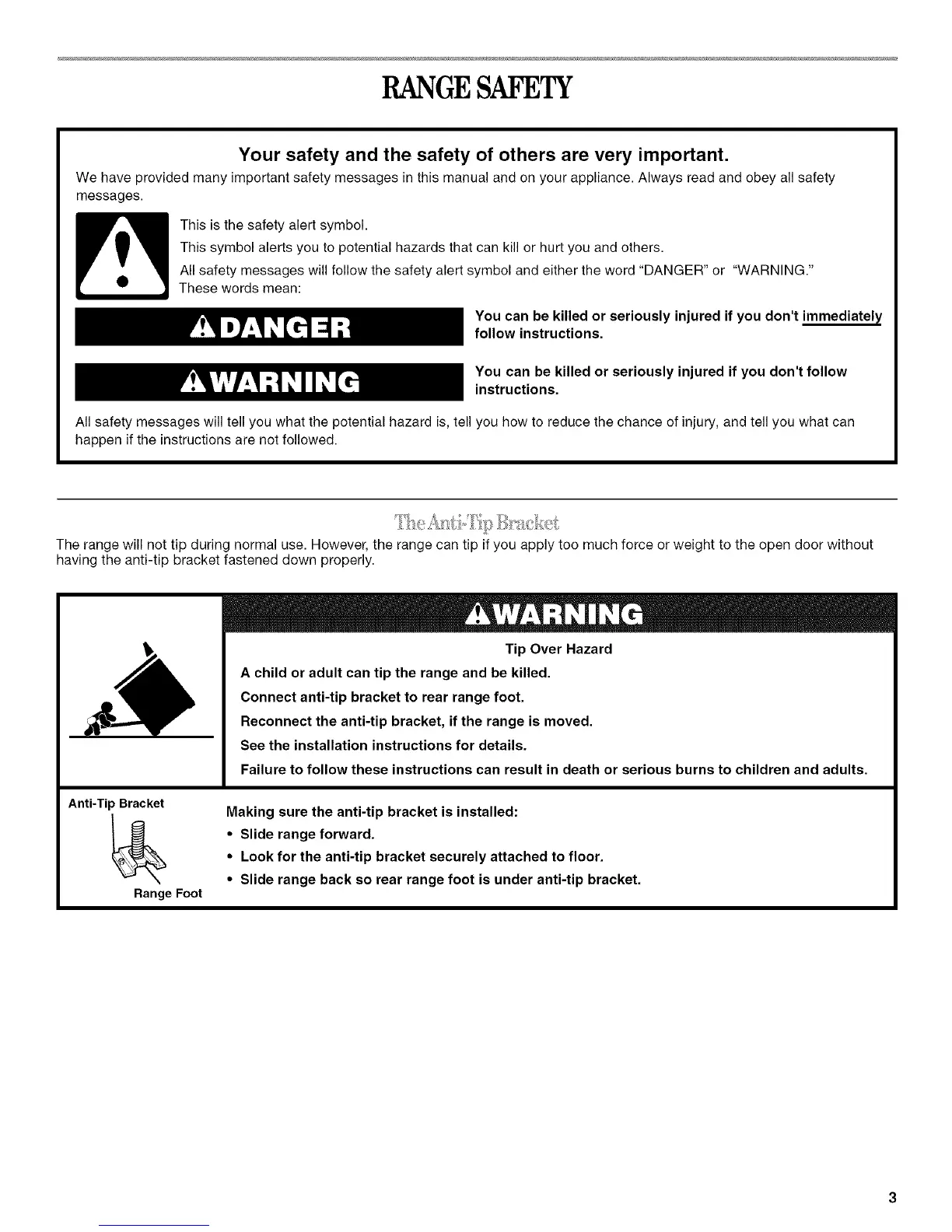 The range will not tip during normal use. However, the range can tip if you apply too much force or weight to the open door without