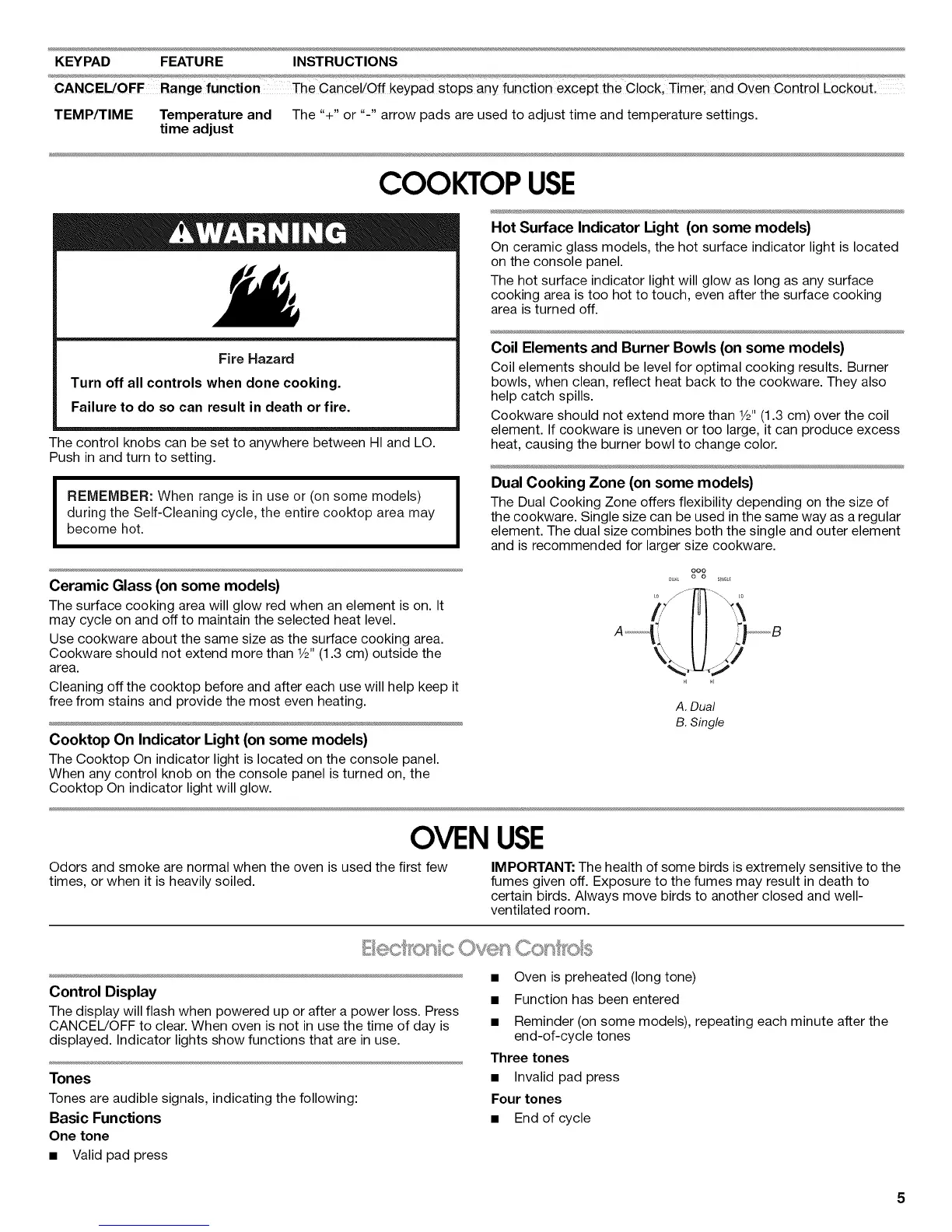 CANCEL/OFF Range function The CanCe!!off keYpad stops any function except the C!ock, Timer, and Oven Contro! LockoUt.
