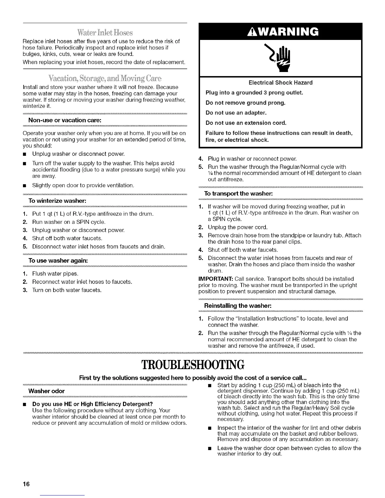 1 qt (1 L) of R.V.-type antifreeze in the drum. Run washer on