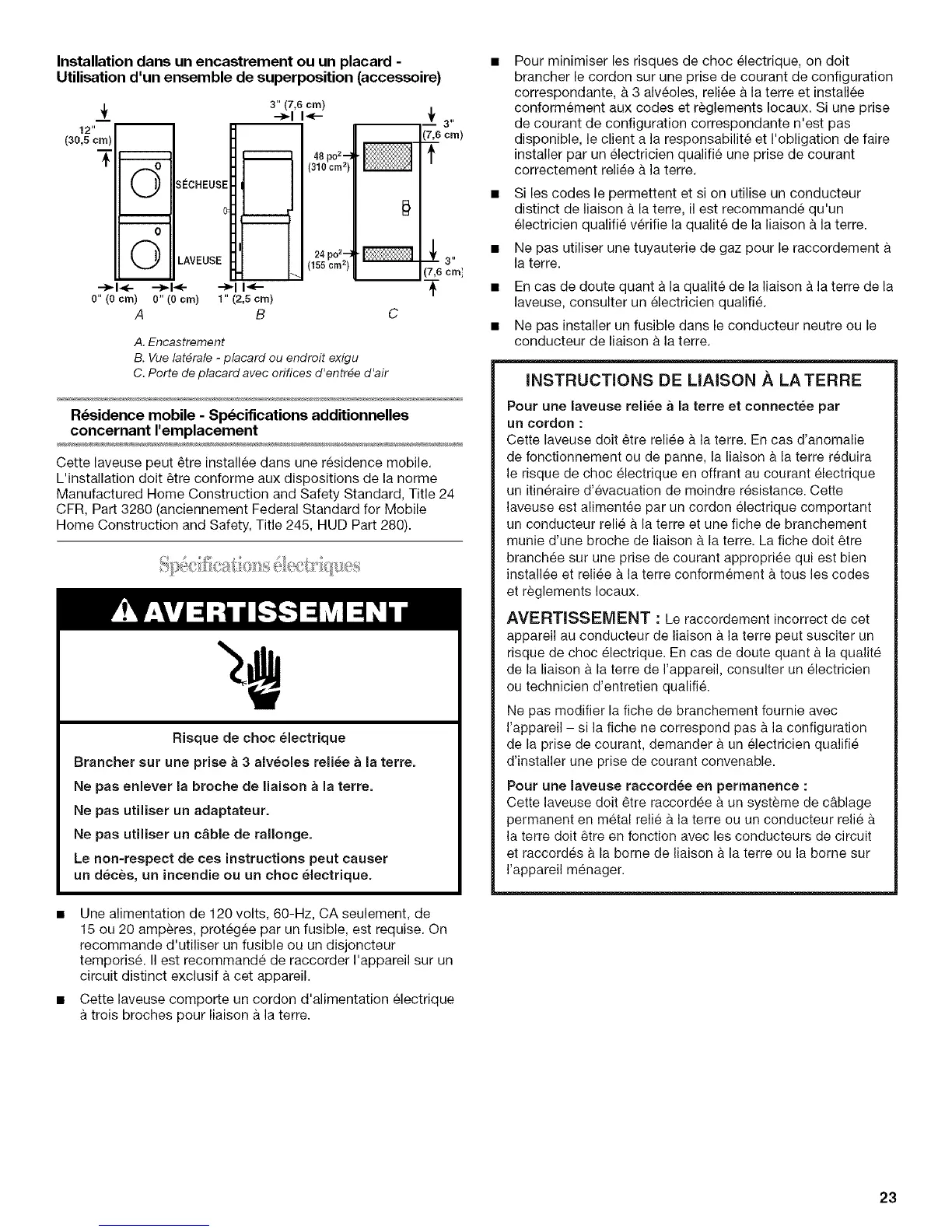 Cette laveuse dolt _tre reliee a.la terre. En cas d'anomalie